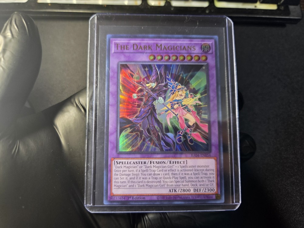 Dark Magician (8th Art) (Quarter Century Secret Rare) , Dark Magician Girl (3rd Art) (Platinum Secret Rare) , Dark Magician Girl (7th Art) (Platinum Secret Rare) & the dark magicians. all well protect...