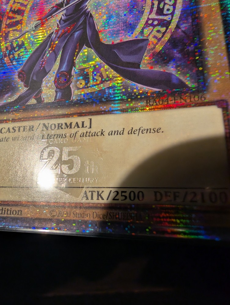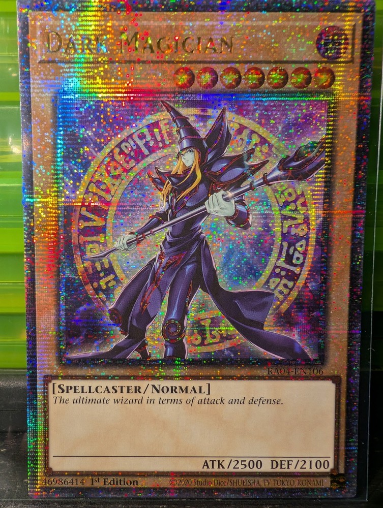 Explore the mystical realms of Yu-Gi-Oh! TCG with the enigmatic Dark Magician card from the Quarter Century Stampede set. This Secret Rare gem, card number RA04-EN106, features the iconic Dark Magician character, rendered with the 8th Art design that collectors and players alike seek out for its distinctiveness. If you have any questions feel free to send me a message.