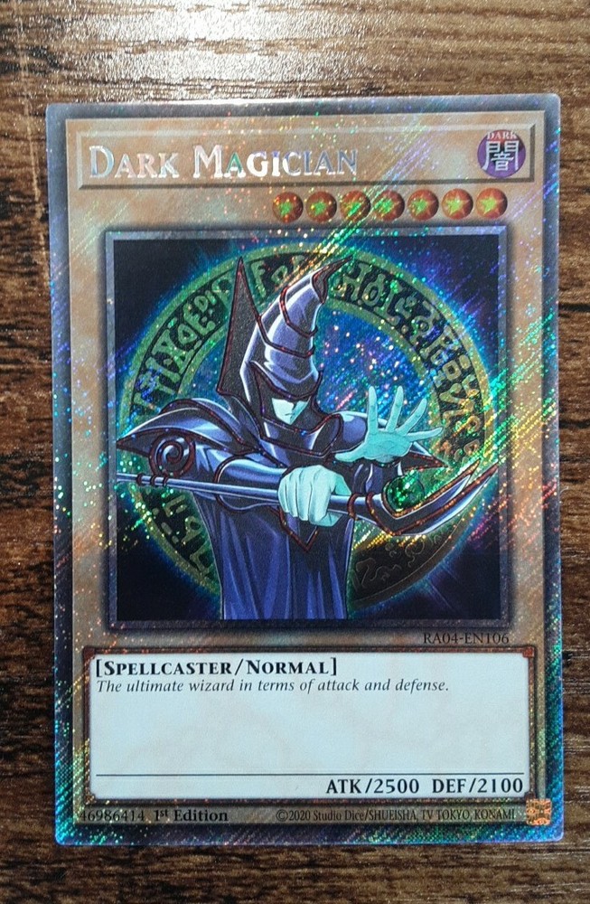 Dark Magician 9th Art 1st Edition Platinum Secret Rare RA04-EN106. Near mint/mint condition. Just pulled! Please see photos.