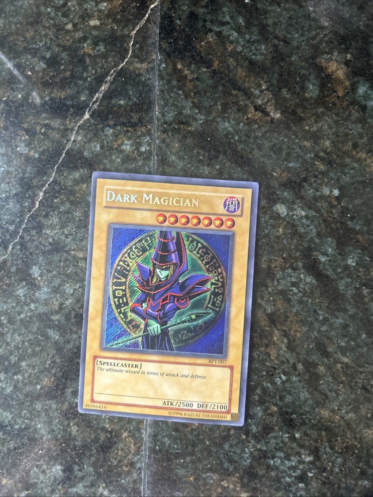 Dark Magician BPT-007 NM Condition. Card has slight wrinkle on the bottom left (see photos of back) and corners are a bit white on back as well.