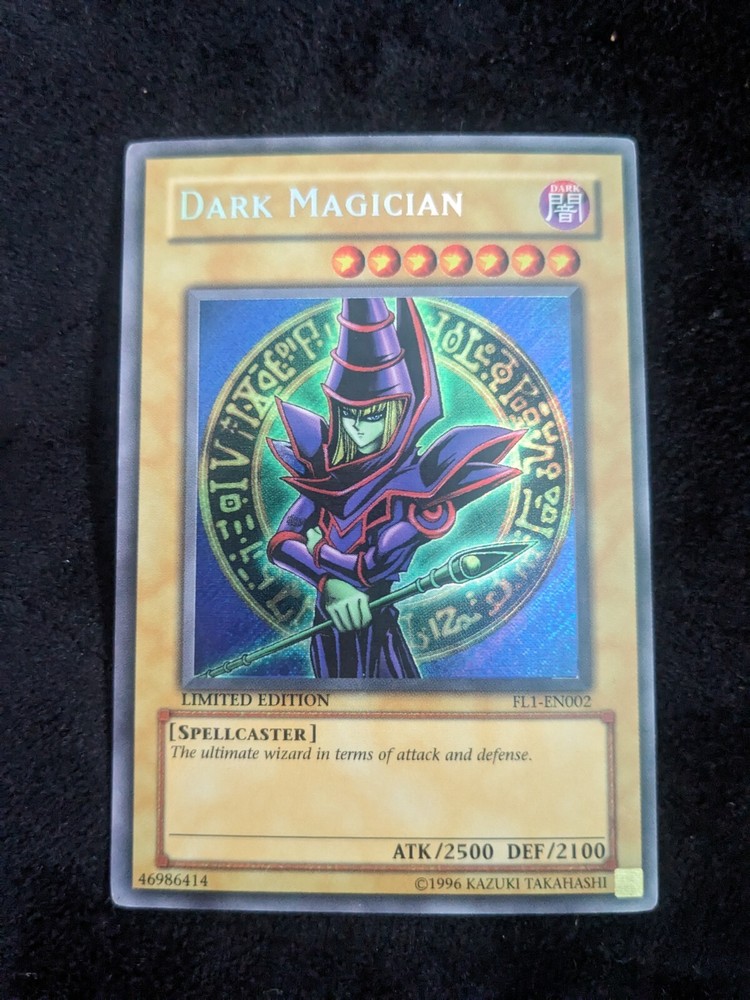 Experience the nostalgia and power of the classic Yu-Gi-Oh! TCG with the Dark Magician card from the Forbidden Legacy set. This limited edition spellcaster card, numbered FL1-EN002, boasts an attack power of 2500 and a defense strength of 2100, ready to make a significant impact in your duels. Crafted by Konami and released in 1996, this Secret Rare gem is a must-have for collectors and players alike. Presenting an iconic image of the Dark Magician, this English language card is a vintage piece that embodies the essence of the Yu-Gi-Oh! trading card game. With its 'Dark' attribute, this normal-type card is a formidable addition to any deck, ensuring that you can harness the strategic depth and history of the game in your next battle.
