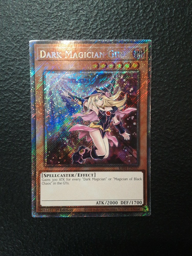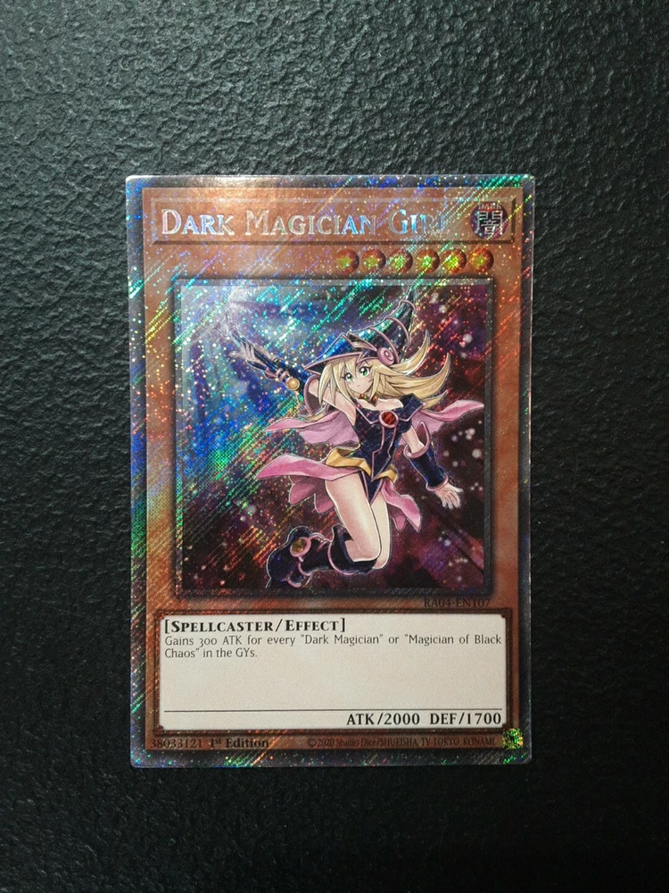 Dark Magician Girl 7th Art RA04-EN107 Platinum Secret Rare 1st Edition. Near mint/mint condition. Just pulled!