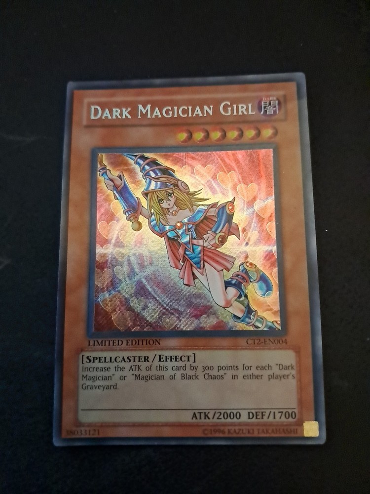 The Dark Magician Girl CT2-EN004 2005 Collectors Tin Limited Edition card is a highly sought-after collectible in the world of Yu-Gi-Oh! TCG. This Secret Rare card features the powerful Spellcaster creature type with an impressive defense of 1700 and attack power of 2000. Produced by Konami in 2005, this English-language card is a valuable addition to any card collection, especially for fans of the Dark attribute. With its limited edition status and exclusive features, this card is a must-have for collectors and players alike.