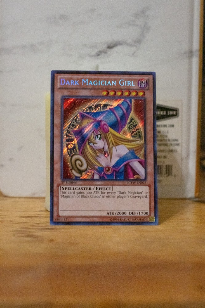 Dark Magician Girl 1st Edition Secret Rare I've had in my binder for a long time and now it's time to let go of it. It's in pretty much mint condition except for some scratching in the back part of the card which I have no idea how it got there. The front part is in amazing quality which is what really matters in my opinion. AI Description LOL: The Dark Magician Girl LCYW-EN022 card is a highly sought-after collectible in the Yu-Gi-Oh! TCG world. This Secret Rare card from the Legendary Collection 3: Yugi's World set boasts a high Attack/Power of 2000 and a Defense/Toughness of 1700, making it a powerful addition to any deck. Manufactured by Konami, this English-language card features the iconic Dark Magician Girl image and is a 1st Edition release, adding to its rarity and desirability among collectors and players alike. With its Spellcaster creature type and unique attributes, this card is a valuable and coveted piece for any Yu-Gi-Oh! enthusiast.