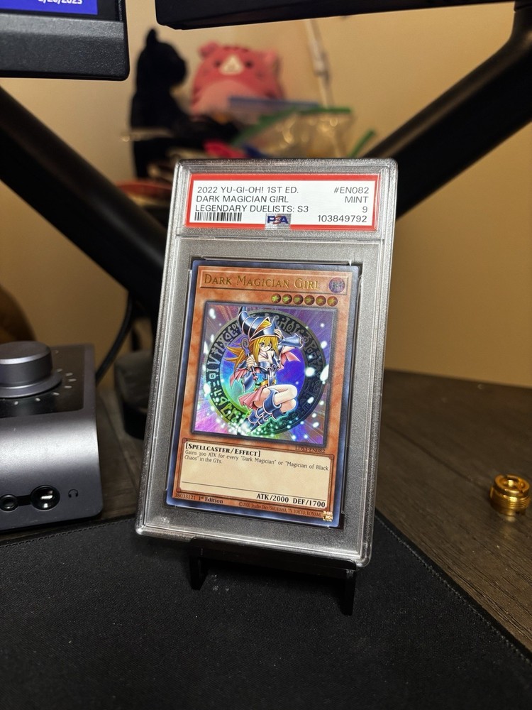 Elevate your Yu-Gi-Oh! TCG collection with the enchanting Dark Magician Girl LDS3-EN082 from Legendary Duelists: Season 3. This Ultra Rare card boasts a striking 1st Edition design, produced by the renowned Konami, ensuring a top-tier addition to any deck or display. With its Effect type status, this card is a formidable force, capable of bolstering your gameplay with its unique abilities. Dark Magician Girl features the iconic Dark attribute, complemented by an impressive 1700 defense/toughness and a powerful 2000 attack/power. Presented in English and carrying the card number LDS3-EN082, this Spellcaster creature/monster type card is a must-have for enthusiasts and competitive players alike, ready to cast a spell of strategy and dominance in your next duel.