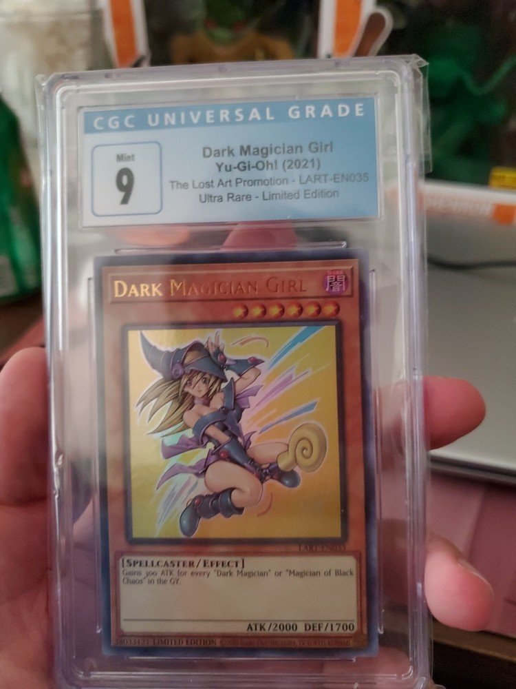 This Dark Magician Girl card is absolutely stunning—graded CGC 9 Mint and in flawless condition! The seller is super reliable, ships with care, and even includes a free sleeve. As a collector, they know how to treat valuable cards right. Super happy with this purchase!