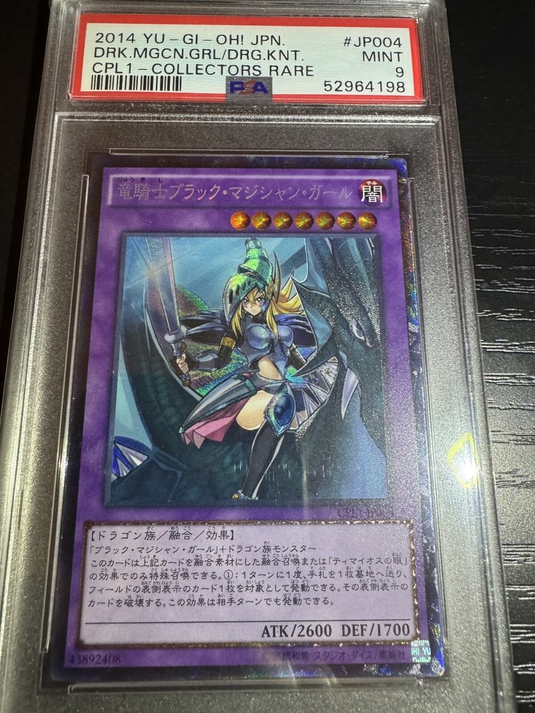 This Japanese Dark Magician Girl The Dragon Knight card is a must-have for any Yu-Gi-Oh! TCG collector. With its beautiful artwork and rarity as a Collector's Rare card, it's a great addition to any collection. The card has been professionally graded by PSA and has a grade of 9. I will ship the next business day in a protective sleeve to prevent scratching of the slab.