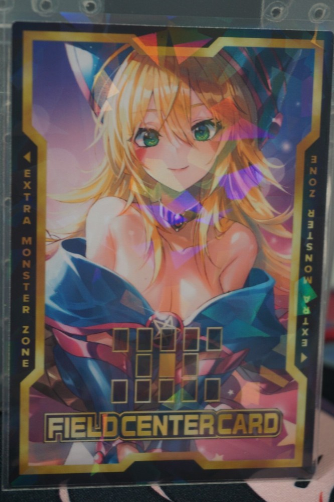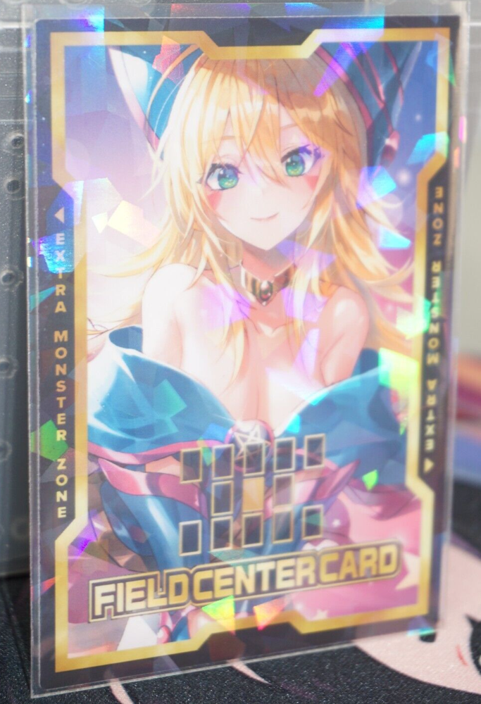 Dark Magician Girl Yu-Gi-Oh Custom Waifu Doujin Card Field Center N14 The card is normal printed, it comes in a shatterfoil effect sleeve (see photos for example of unsleeved card) The card is Japanese Size. It is a custom made card.