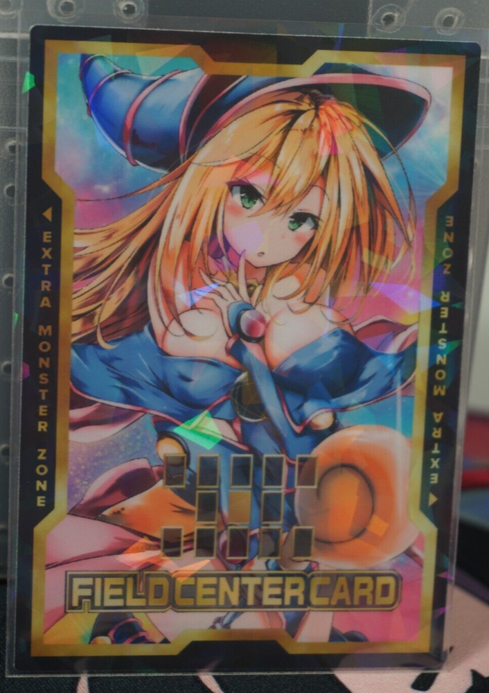 Dark Magician Girl Yu-Gi-Oh Custom Waifu Doujin Card Field Center O15 The card is normal printed, it comes in a shatterfoil effect sleeve (see photos for example of unsleeved card) The card is Japanese Size. It is a custom made card.