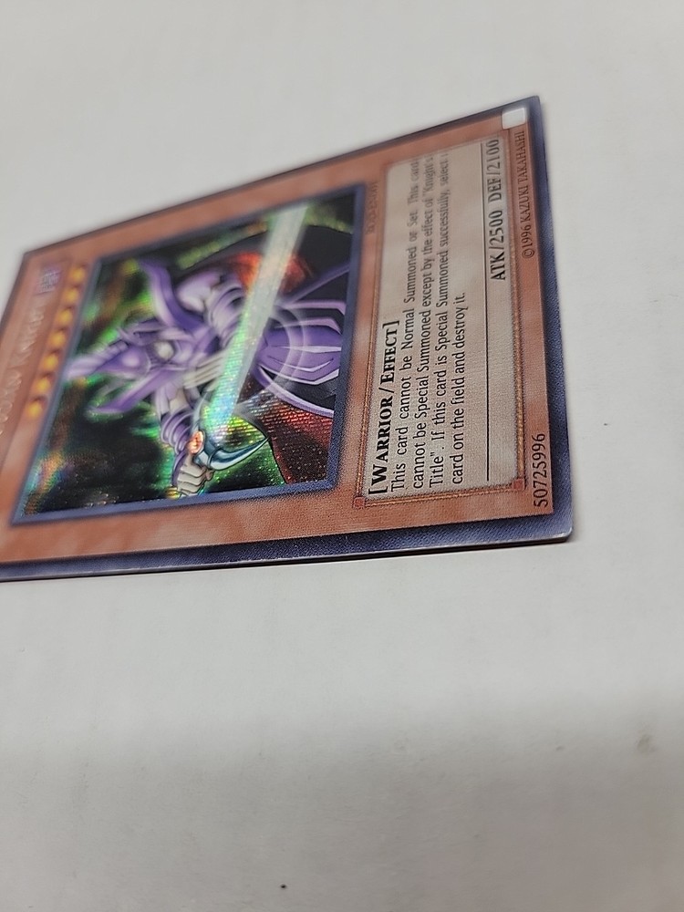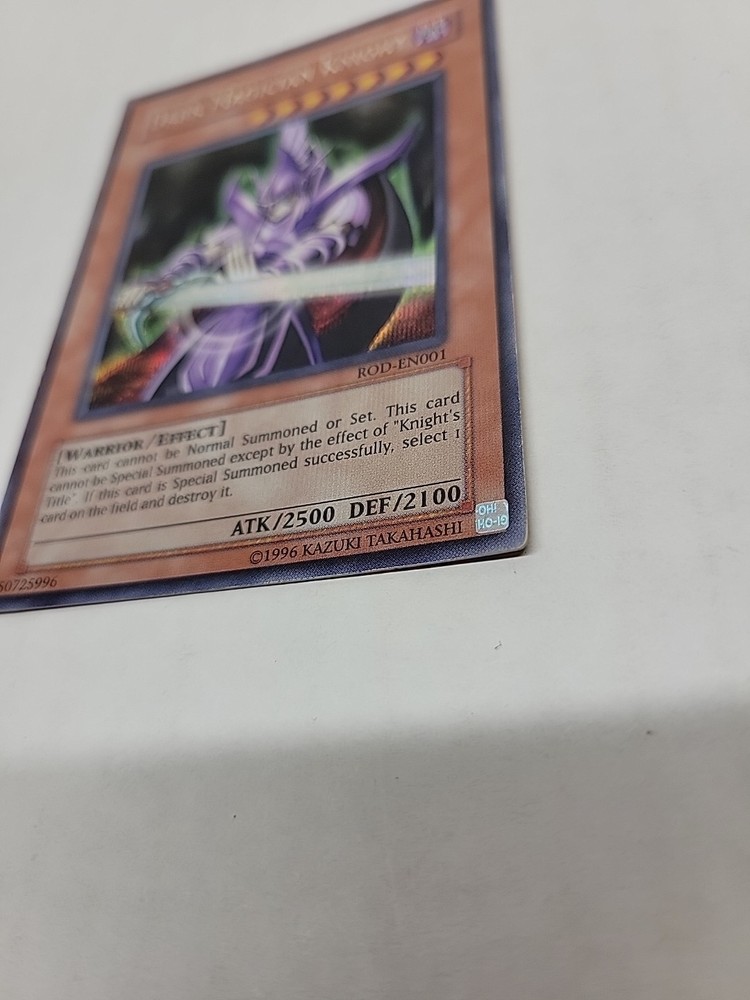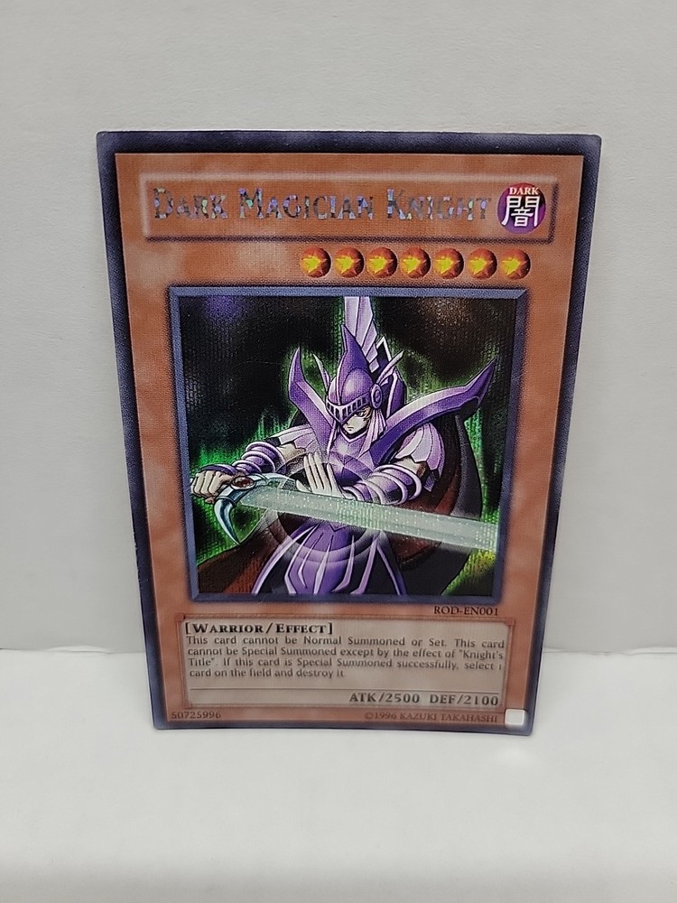 The Dark Magician Knight ROD-EN001 Yugioh card is a highly sought-after collectible in the Yu-Gi-Oh! franchise. This Super Parallel Rare card features the iconic Dark Magician Knight character with a striking holo finish, making it a standout addition to any card collection. Released in 1996 as part of the Yu-Gi-Oh! Reshef of Destruction Promotional Cards set, this vintage card has a defense of 2100 and an attack power of 2500, showcasing the balance and power that this franchise is known for. Its rarity and speciality as a Dark card from the original manufacturer, Konami, further enhances its appeal to collectors and fans alike.