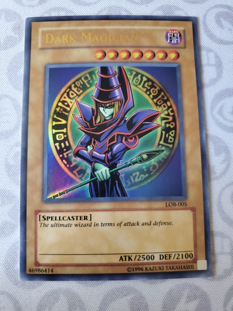 This Dark Magician card is a must-have for any Yu-Gi-Oh! collector! The Ultra Rare foil looks stunning, and the Near Mint condition is flawless. A true classic from the Legend of Blue-Eyes set—perfect for decks or display. Highly recommended for fans and players alike!