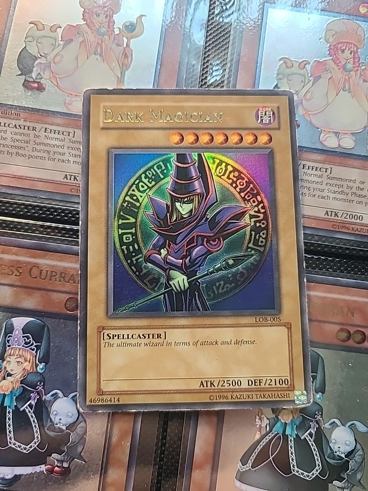 The Dark Magician card from the Yu-Gi-Oh! TCG is a highly sought after collectible for fans and players alike. This Ultra Rare card from the Legend of Blue Eyes White Dragon Unlimited Edition boasts a high Attack/Power of 2500 and a Defense/Toughness of 2100, making it a formidable Spellcaster creature in the game. Manufactured by Konami, this English language card is a must-have for any collector looking to enhance their deck with a powerful and iconic card like Dark Magician.