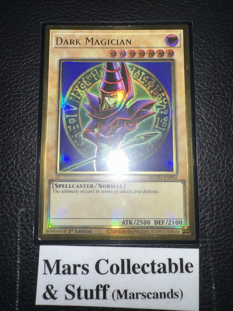 Dark Magician (MGED-EN002) 1st Edition - Premium Gold Rare - NM. All orders under $20 will ship with EBay standard envelope. All orders over $25 will include tracking. All cards are mailed with protected top loader. Cards with single pictures are Mint or Near Mint condition. Flaws will be present in pictures post. If you have any questions or concerns please message me and I will respond as soon as possible. If additional pictures are needed please contact me. Condition: Will have condition listed in the title. However, if you have question or need additional pictures please contact me. We do our best to answer all message. Return: If there’s an issue with your order please contact me first. I will do my best to correct any errors or issues. Shipping: Will typically ship the next day, unless it’s a weekend and in that case cards will be shipped on Monday.