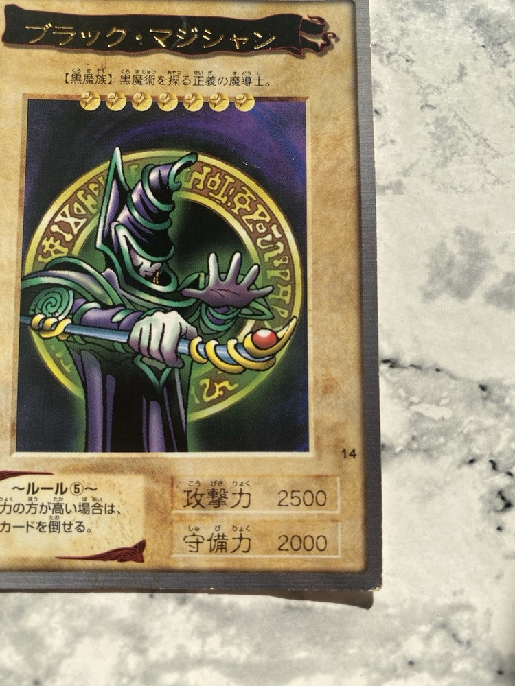 This is a rare and highly sought-after Dark Magician card from the Yu-Gi-Oh! TCG. The card is from the 1998 Japanese set, manufactured by Bandai, and has the card number 14. It features the attribute of Darkness and is part of the Generations set. This card is a must-have for any serious collector of the Yu-Gi-Oh! TCG and is sure to be a valuable addition to your collection. Don't miss out on the opportunity to own this rare and unique card.