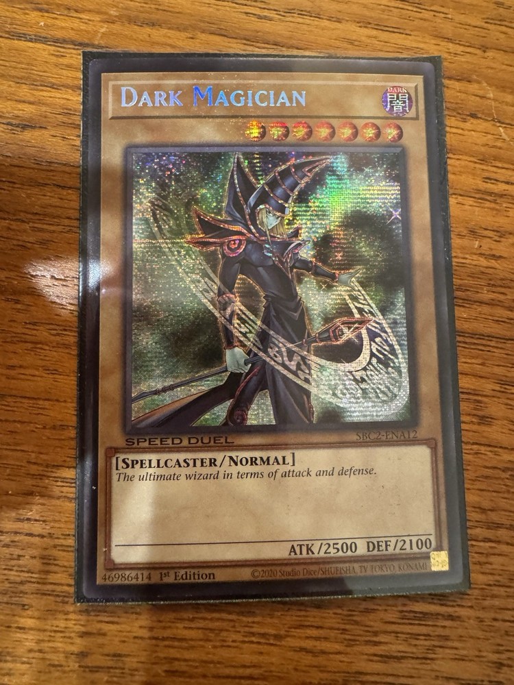 Explore the mystical world of Yu-Gi-Oh! TCG with the iconic Dark Magician card from the Speed Duel: Battle City Finals set. This card, known for its powerful Darkness attribute, is a must-have for collectors and duelists alike, featuring the impressive Prismatic Secret Rare rarity that shines in any collection. The Dark Magician card is presented in English and is a 1st Edition release from Konami, reflecting the quality and depth of the Yu-Gi-Oh! universe. Proudly manufactured in the United States, this card is not graded, offering you a pristine piece to add, display, or wield in your next battle.