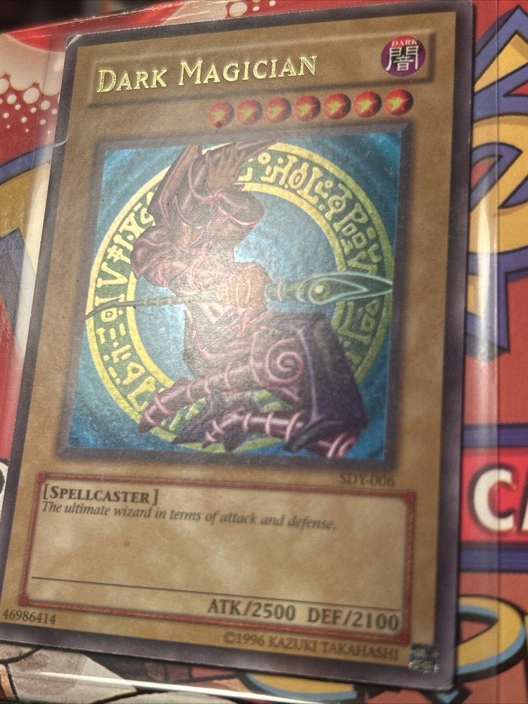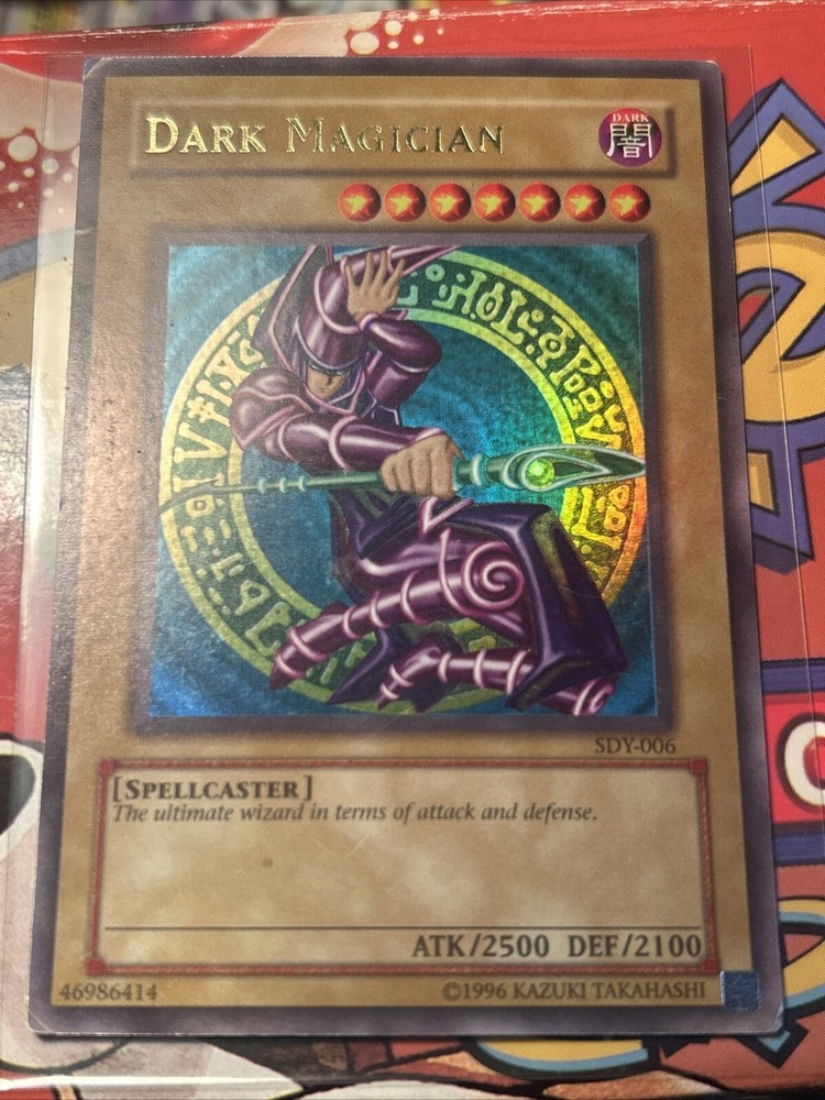Experience the nostalgia and enhance your Yu-Gi-Oh! TCG collection with the iconic Dark Magician card from the Starter Deck: Yugi Unlimited series. As a timeless piece from 1996, this card features the classic artwork and design that veteran players and new enthusiasts alike have come to admire. Konami's craftsmanship shines with the card's Ultra Rare status, ensuring it stands out in any collection. The Dark Magician, card number SDY-006, boasts an impressive 2500 attack power and 2100 defense toughness, making it a formidable addition to your deck. Its Normal type classification and Spellcaster creature/monster type hint at its strategic prowess in the game. Collectors and players will appreciate the English language version of the card, as it's a must-have for those looking to complete their Yu-Gi-Oh! TCG set.