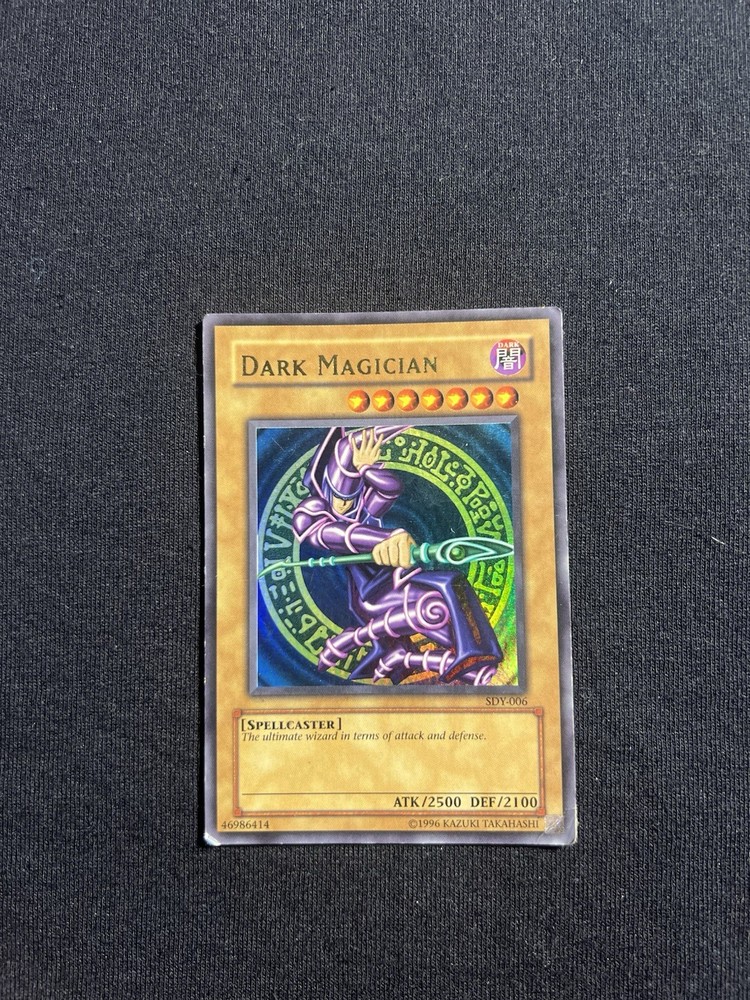 #1 Elevate your Yu-Gi-Oh! TCG collection with the iconic Dark Magician card from the Starter Deck: Yugi series. A staple for spellcaster-type decks, this card boasts an attack power of 2500 and a defense strength of 2100, striking a balance between offensive and defensive prowess. This particular Dark Magician card, numbered SDY-006, is a must-have for enthusiasts and collectors alike. As an Ultra Rare card in the English language, it stands as a prestigious addition to any deck or display. Manufactured by Konami, it remains a significant piece in the expansive Yu-Gi-Oh! universe.