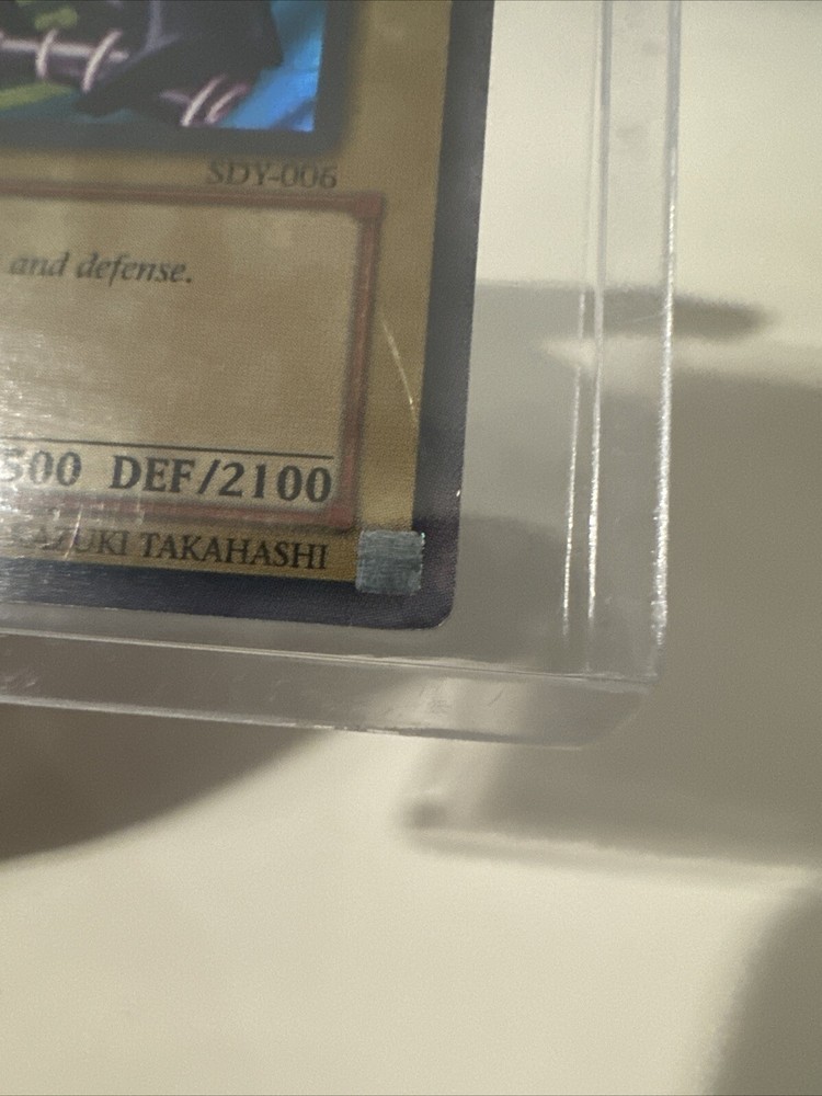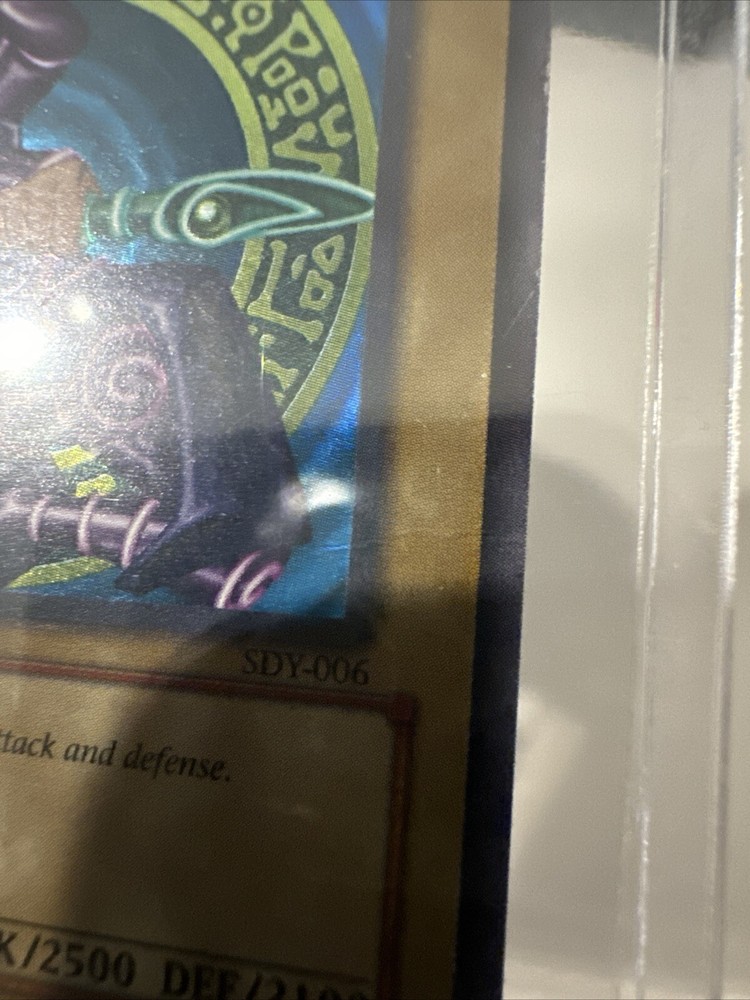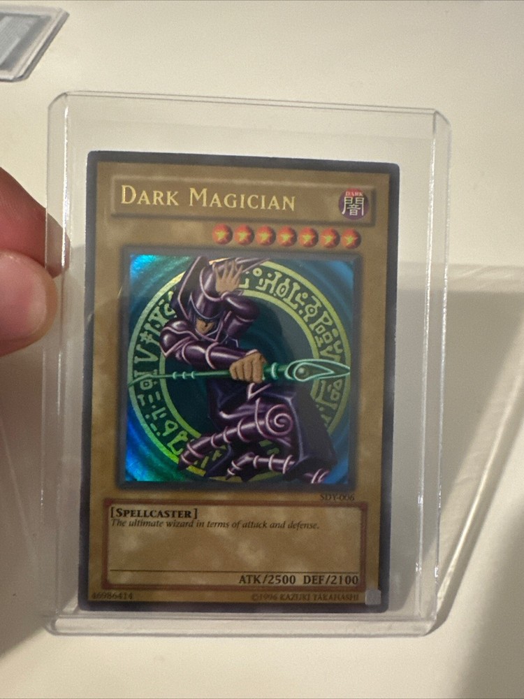 This Dark Magician card is an Ultra Rare card from the Yu-Gi-Oh! TCG game. It belongs to the Starter Deck: Yugi set and has the card number SDY-006. The card is in English language and manufactured by Konami. It features the Spellcaster creature type and has a Defense/Toughness of 2100 while the Attack/Power is 2500. This card is a must-have for any collector or player of the game. This card does have a small crease as seen in photo 2. Otherwise in great condition. This card comes in a penny sleeve and hard sleeve.