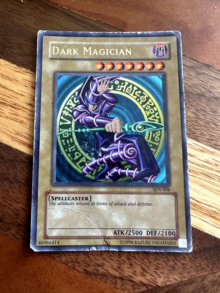 Hello! You are buying one Dark Magician SDY-006 Unlimited Edition Ultra Rare in heavily played condition. Reason for heavily played condition is heavy general play/edge/scratchwear, creasewear. Card is pretty beat up. See photos for details! As a thank you for buying from me, I will throw in two free Yugioh commons! Thank you so much for looking, have a great day! If there is ever an issue, please let me know so I can do whatever I can to resolve it! Please check out my other items! I have many more single cards!