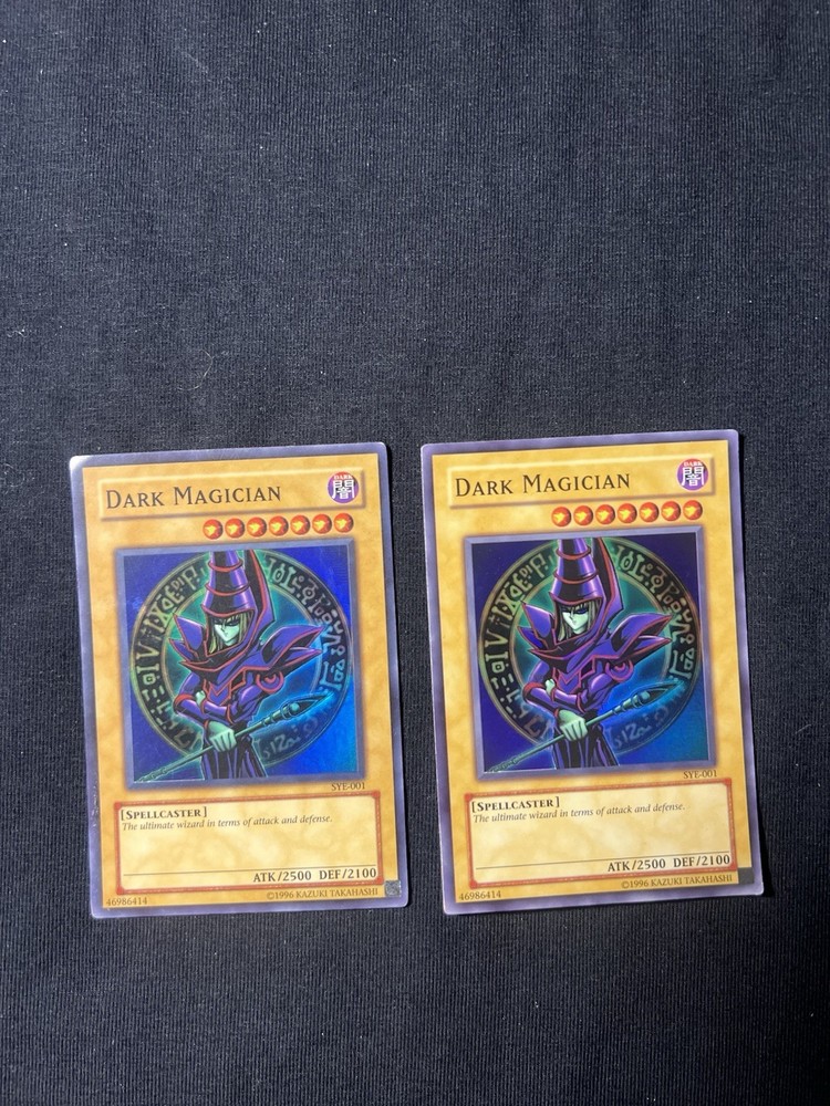 Set of 2 The Dark Magician SYE-001 Starter Deck is a collectible card game product featuring the iconic Yu-Gi-Oh! character, Yugi. This edition includes the Dark Magician card with attributes of Dark color, Spellcaster creature type, and Super Rare rarity. Manufactured by Konami, this English-language card has a high Attack/Power of 2500 and Defense/Toughness of 2100. Perfect for fans of Yu-Gi-Oh! TCG, this deck is a valuable addition to any collection.