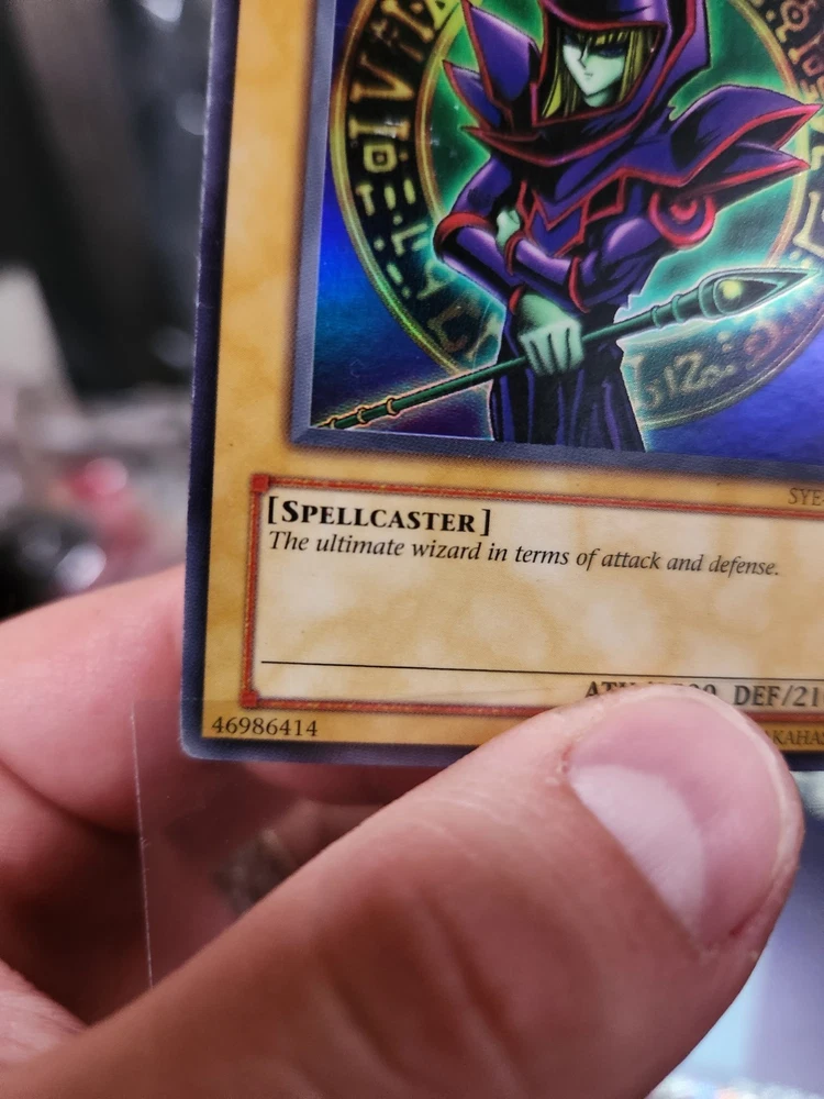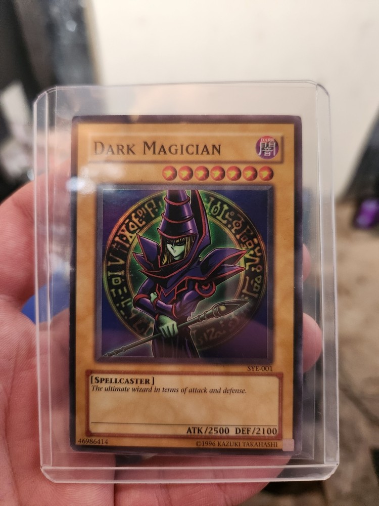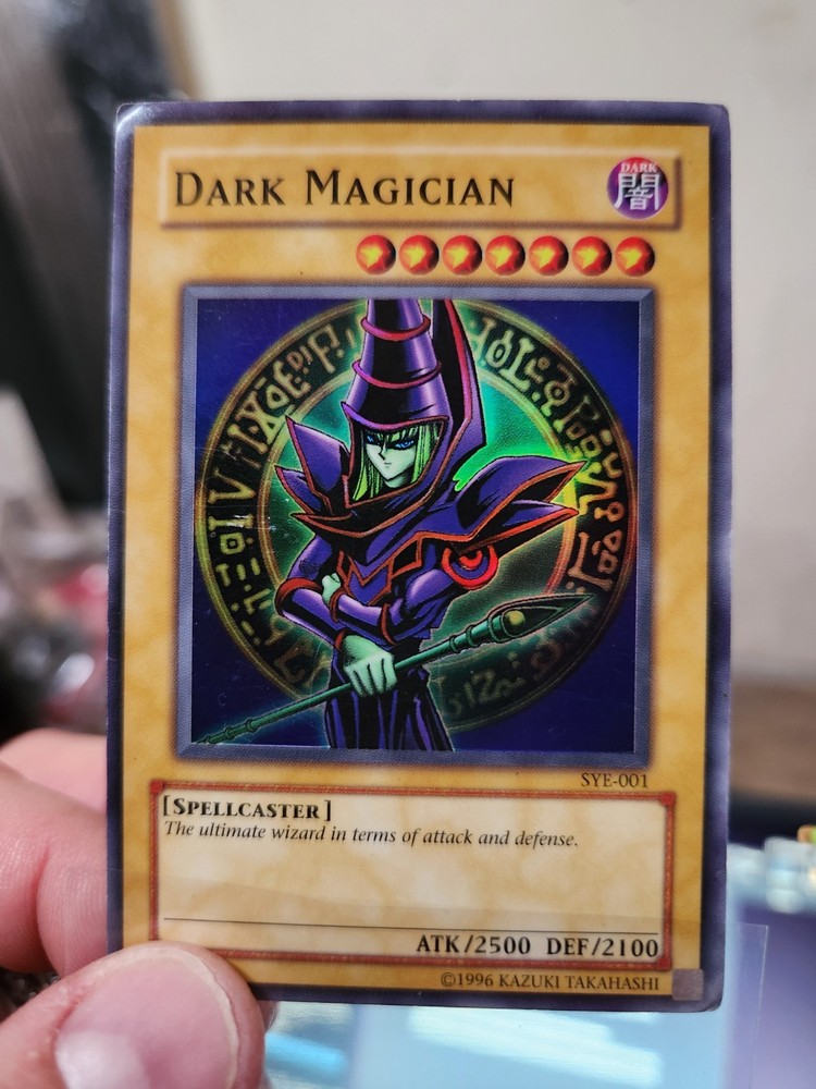 The Dark Magician SYE-001 Starter Deck: Yugi Evolution-Unlimited Edition is a highly sought-after collectible card game product featuring the iconic character Dark Magician. This super rare card with attributes including Dark attribute, spellcaster type, and a defense/toughness of 2100, promises to be the ultimate wizard in terms of attack and defense. With its English language and unlimited edition status, this card from the Yu-Gi-Oh! TCG is a must-have for any collector or player looking to enhance their deck with a powerful addition. Card is HP-DMG condition.