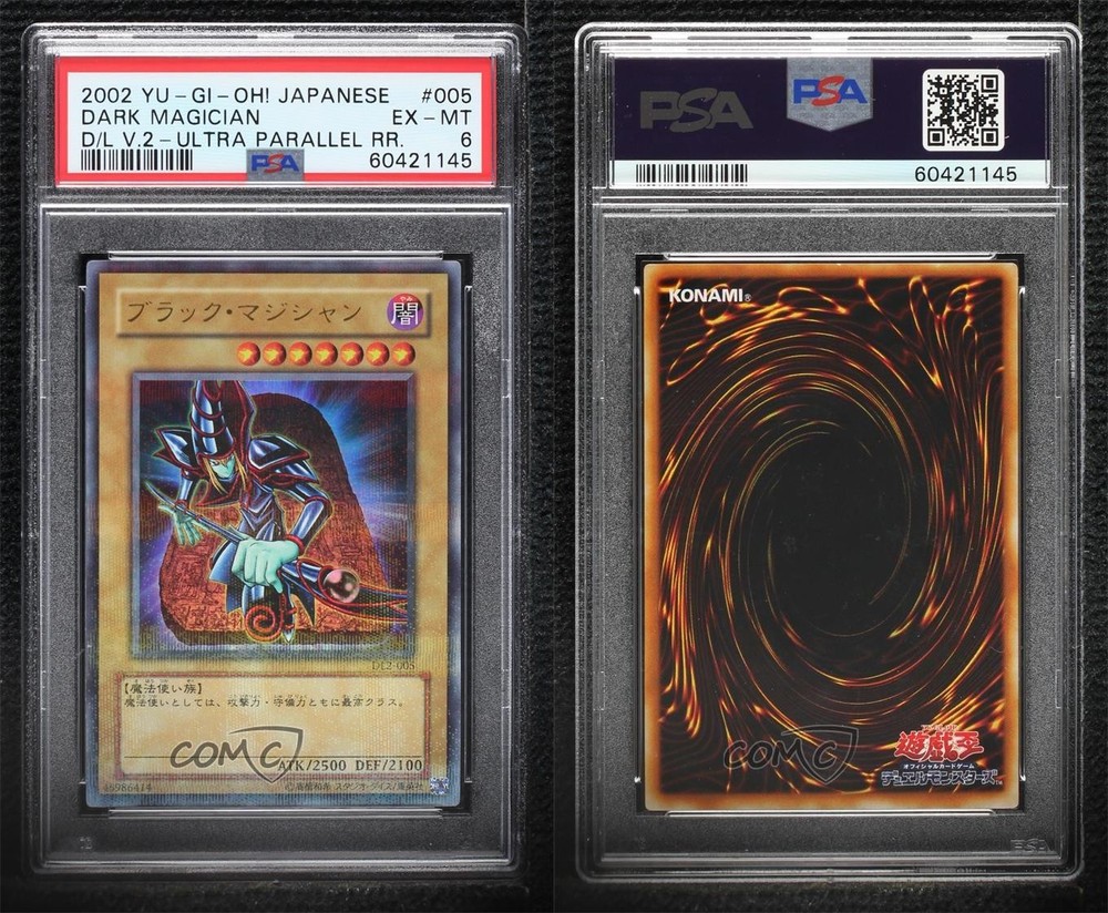2003 Yu-Gi-Oh! Duelist League Series 2 - [Base] #DL2-06 Dark Magician (Ultra Parallel) Graded PSA 6 EX-MT COMC Item: 139767228 - YuGiOh Card - Featuring Dark Magician Search for more: 2003 Yu-Gi-Oh! Duelist League Series 2 Search for more: 2003 Yu-Gi-Oh! Duelist League Series 2 - [Base] View all of our Listings Auctions Buy It Now About Us Located in the beautiful Pacific Northwest, COMC (Check Out My Cards) is the world's largest consignment service for trading card singles. More than 10,000 people have used our consignment service to list over 50 million trading cards. Find out how we can help you consign your items on eBay by contacting us through eBay messaging. COMC -- "The Safe & Easy Way to Buy & Sell" Raw Condition for Modern Cards Unless otherwise noted, raw modern cards are listed in Near Mint-Mint condition or better. A NM-MT card appears to be Mint at first glance, but upon closer inspection, may exhibit some of the following: minor print defects (e.g. roller marks, print line, dimple), minor scratches, slight edge wear, and slight corner wear. Centering is clearly visible in the images provided and does not factor into our condition assessment. Raw Condition for Vintage Cards Unless otherwise noted, raw vintage cards are listed in Excellent condition or better. An EX card may exhibit some of the following: minor rounding of corners, surface wear, print defects, light scratches, and slight edge wear/chipping. Centering is clearly visible in the images provided and does not factor into our condition assessment. Domestic Shipping Combined shipping for multiple items is available. To receive combined shipping, please ensure all desired items are in your eBay shopping cart before proceeding to checkout. eBay limits orders to 40 items per order. We automatically combine multiple orders placed on the same day. If you place multiple orders on the same day, please contact us to request a refund of applicable shipping costs. Signature confirmation may be required on invoices over $400. All cards are protected and shipped securely. International Shipping COMC offers eBay's International Shipping (EIS) for international orders under $2,500* (see country exceptions below). All duties and import fees are paid at checkout; in the rare event that there are additional import fees upon delivery, these are borne by the buyer. EIS packages route through a shipping hub in Erlanger, KY before shipping to their final destination. Please note that EIS does not allow for combined shipments. The shipping rates are determined by eBay and cannot be adjusted. *Maximum sale price exceptions: Colombia, Kuwait ($2,000); Taiwan ($1,539); Chile, Costa Rica, Guatemala, Honduras, Trinidad and Tobago ($1,000); Antigua and Barbuda, Aruba, Belize, Dominica, Grenada, Philippines, Saint Kitts and Nevis, Saint Lucia, Montserrat, Turks and Caicos Islands ($500); Dominican Republic, El Salvador ($200). Please request a shipping quote through eBay messaging for orders that exceed the maximum sale price supported by eBay's International Shipping. You will be responsible for all duties and import fees for international orders shipped outside the EIS. All cards are protected and shipped securely. Payment COMC does not accept offers on our cards through our eBay storefront. COMC utilizes eBay’s managed payments system. If you are experiencing difficulties making a payment, please contact eBay for assistance. Return Policy Returns are only accepted on the rare occasion the item is not as described. If you are making a return, please initiate the return process through eBay so a mailing label can be provided for you. Prior to listing, our expert team carefully assessed this item to represent it accurately. Please review the description and high-definition images prior to purchasing to ensure this item meets your satisfaction. We welcome you to contact us if you have further questions about this item. Trust and Integrity COMC carefully assesses each item consigned to us to prevent fraudulent items from entering the marketplace. If you believe an item offered on COMC may be fraudulent, please contact us with details so we can investigate the issue. Items we determine are outside our supported items policy may be removed. Last Modified: 6/2/2025 8:47:02 AM PDT