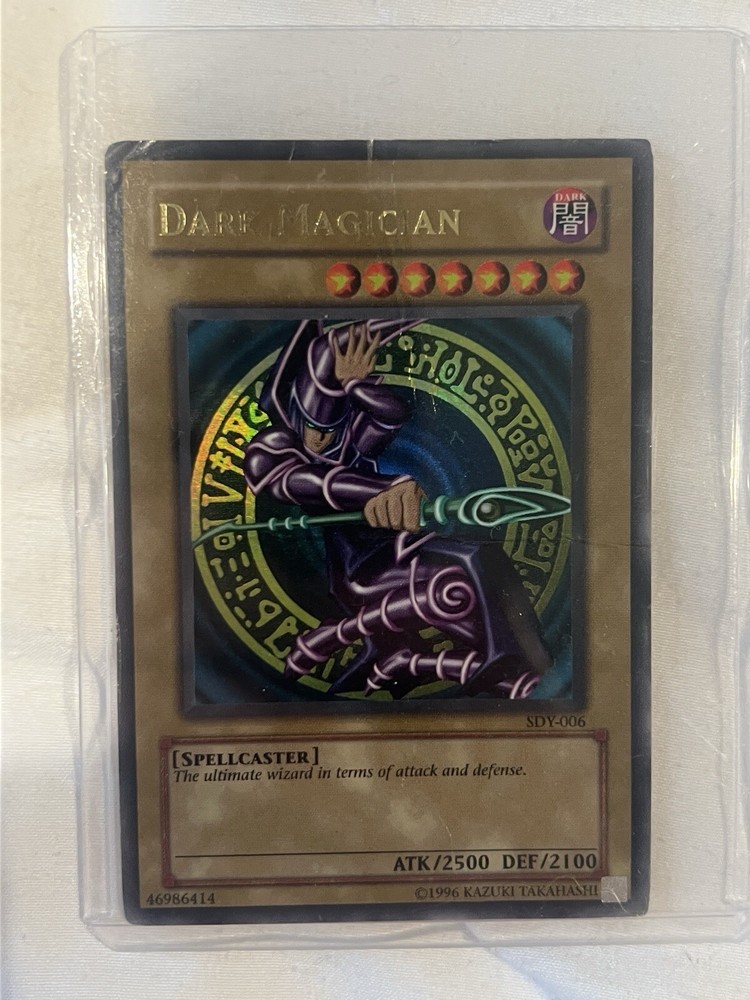 Ships in top loader with cardboard reinforcement. Dive into the world of Yu-Gi-Oh! TCG with the iconic Dark Magician card, a must-have for spellcaster enthusiasts and collectors alike. Featuring the legendary Yugi Muto, this Super Rare SDY-006 card boasts a striking foil finish that accentuates its classic design, making it a standout piece in any collection. Crafted by Konami and hailing from the United States, the Dark Magician card is a testament to the game's rich history, fittingly categorized as a Vintage item. It's presented in English and adheres to the standard card size, ensuring compatibility with most card protectors and binders. Add this timeless piece to your set and embrace the strategic depth it brings to your duels.