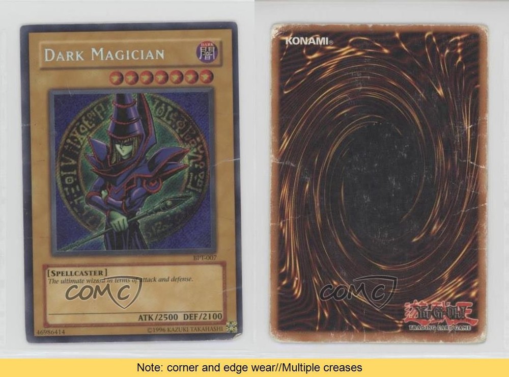 2003 Yu-Gi-Oh! Collectors Tin - Promo [Base] #BPT-007 Dark Magician COMC Item: 87329679 CONDITION NOTE: corner and edge wear//Multiple creases - YuGiOh Card - Featuring Dark Magician Search for more: 2003 Yu-Gi-Oh! Collectors Tin Search for more: 2003 Yu-Gi-Oh! Collectors Tin - Promo [Base] View all of our Listings Auctions Buy It Now About Us Located in the beautiful Pacific Northwest, COMC (Check Out My Cards) is the world's largest consignment service for trading card singles. More than 10,000 people have used our consignment service to list over 50 million trading cards. Find out how we can help you consign your items on eBay by contacting us through eBay messaging. COMC -- "The Safe & Easy Way to Buy & Sell" Raw Condition for Modern Cards Unless otherwise noted, raw modern cards are listed in Near Mint-Mint condition or better. A NM-MT card appears to be Mint at first glance, but upon closer inspection, may exhibit some of the following: minor print defects (e.g. roller marks, print line, dimple), minor scratches, slight edge wear, and slight corner wear. Centering is clearly visible in the images provided and does not factor into our condition assessment. Raw Condition for Vintage Cards Unless otherwise noted, raw vintage cards are listed in Excellent condition or better. An EX card may exhibit some of the following: minor rounding of corners, surface wear, print defects, light scratches, and slight edge wear/chipping. Centering is clearly visible in the images provided and does not factor into our condition assessment. Domestic Shipping Combined shipping for multiple items is available. To receive combined shipping, please ensure all desired items are in your eBay shopping cart before proceeding to checkout. eBay limits orders to 40 items per order. We automatically combine multiple orders placed on the same day. If you place multiple orders on the same day, please contact us to request a refund of applicable shipping costs. Signature confirmation may be required on invoices over $400. All cards are protected and shipped securely. International Shipping COMC offers eBay's International Shipping (EIS) for international orders under $2,500* (see country exceptions below). All duties and import fees are paid at checkout; in the rare event that there are additional import fees upon delivery, these are borne by the buyer. EIS packages route through a shipping hub in Erlanger, KY before shipping to their final destination. Please note that EIS does not allow for combined shipments. The shipping rates are determined by eBay and cannot be adjusted. *Maximum sale price exceptions: Colombia, Kuwait ($2,000); Taiwan ($1,539); Chile, Costa Rica, Guatemala, Honduras, Trinidad and Tobago ($1,000); Antigua and Barbuda, Aruba, Belize, Dominica, Grenada, Philippines, Saint Kitts and Nevis, Saint Lucia, Montserrat, Turks and Caicos Islands ($500); Dominican Republic, El Salvador ($200). Please request a shipping quote through eBay messaging for orders that exceed the maximum sale price supported by eBay's International Shipping. You will be responsible for all duties and import fees for international orders shipped outside the EIS. All cards are protected and shipped securely. Payment COMC does not accept offers on our cards through our eBay storefront. COMC utilizes eBay’s managed payments system. If you are experiencing difficulties making a payment, please contact eBay for assistance. Return Policy Returns are only accepted on the rare occasion the item is not as described. If you are making a return, please initiate the return process through eBay so a mailing label can be provided for you. Prior to listing, our expert team carefully assessed this item to represent it accurately. Please review the description and high-definition images prior to purchasing to ensure this item meets your satisfaction. We welcome you to contact us if you have further questions about this item. Trust and Integrity COMC carefully assesses each item consigned to us to prevent fraudulent items from entering the marketplace. If you believe an item offered on COMC may be fraudulent, please contact us with details so we can investigate the issue. Items we determine are outside our supported items policy may be removed. Last Modified: 5/30/2025 8:59:10 PM PDT