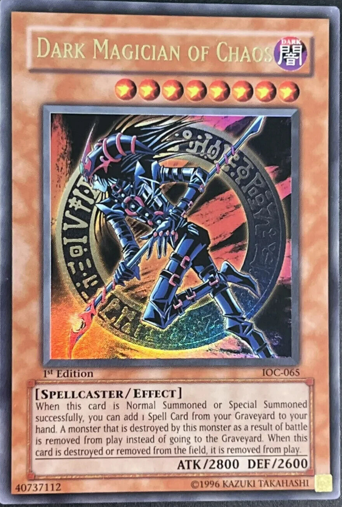 Dark Magician of Chaos (IOC 065) - 1st Edition Ultra Rare -Yugioh *FREE SHIPPING Experience the thrill of owning a rare and coveted card with the Dark Magician of Chaos (IOC 065) - 1st Edition Ultra Rare -Yugioh! This card is perfect for collectors and players alike, with its stunning holo finish and powerful effect abilities. The card belongs to the Invasion of Chaos set and is manufactured by Konami, ensuring its high quality and authenticity. The card is classified under the Attribute/MTG:Color of Darkness and Card Type of Effect, making it a formidable addition to any deck. Its rarity and unique features make it a must-have for any serious Yu-Gi-Oh! TCG player. Add this card to your collection today and take your game to the next level!