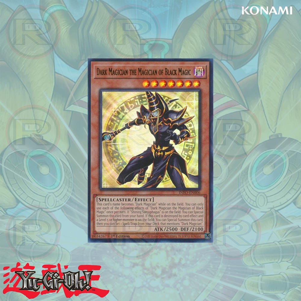 Dark Magician the Magician of Black Magic INFO-EN006 - NM/M - Ultra Rare NEVER PLAYED!!! Card is straight from the pack, never been played, and in near mint/mint (NM/M) condition. A protective casing ensures the card arrives to you undamaged.