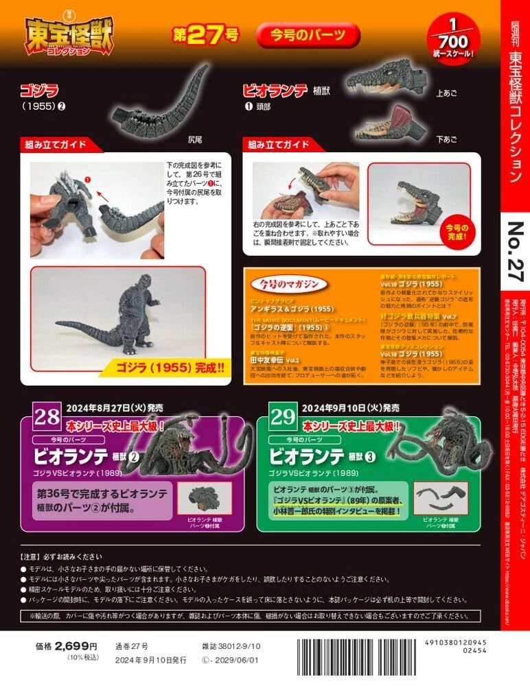 - Condition - Deagostini monster collection kaiju figure Godzilla Mothra Japan 1/700 Vol 1 ~ 33 Pre VOL 34 : Scheduled to be sold on 11/19 Pre VOL 35 : Scheduled to be sold on 12/3 Brand New. !! CAUTION !! CAUTION !! This series will be 100 issues in total. Large monsters are provided by dividing the parts of the figure! King Ghidorah, Mechagodzilla, Hedorah, Gigan, Radon! A lineup of monsters that transcends works and eras! Monsters created by Toho throughout the Showa and Heisei eras that fascinate people. The biweekly "Toho Kaiju Collection" is a collection of those monsters on a 1/700 unified scale. It is a figure series with a concept that has never existed before. - Delivery method - The dispatch method ships an item using International courier or International mail I cannot choose the dispatch method of a visitor. In hope, an additional charge may generate DHL from a visitor. It may take some tariff by your country because it is shipped from Japan. - Payment method - It pays with Via Managed Payments. It will be shipped to the address listed on ebay. We will ship as soon as possible after payment is confirmed. But we are time Saturday and Sunday off, so customers who settled in Saturday and Sunday will be Monday shipping. - About returns - It will consider it as within 30 days after deliver - International Buyers - Please Note - Import duties, taxes and charges are not included in the item price or shipping charges. These charges are the buyer’s responsibility. These charges are normally collected by the delivering freight (shipping) company or when you pick the item up - do not confuse them for additional shipping charges. We do not mark merchandise values below value or mark items as “gifts” - US and International government regulations prohibit such behavior.