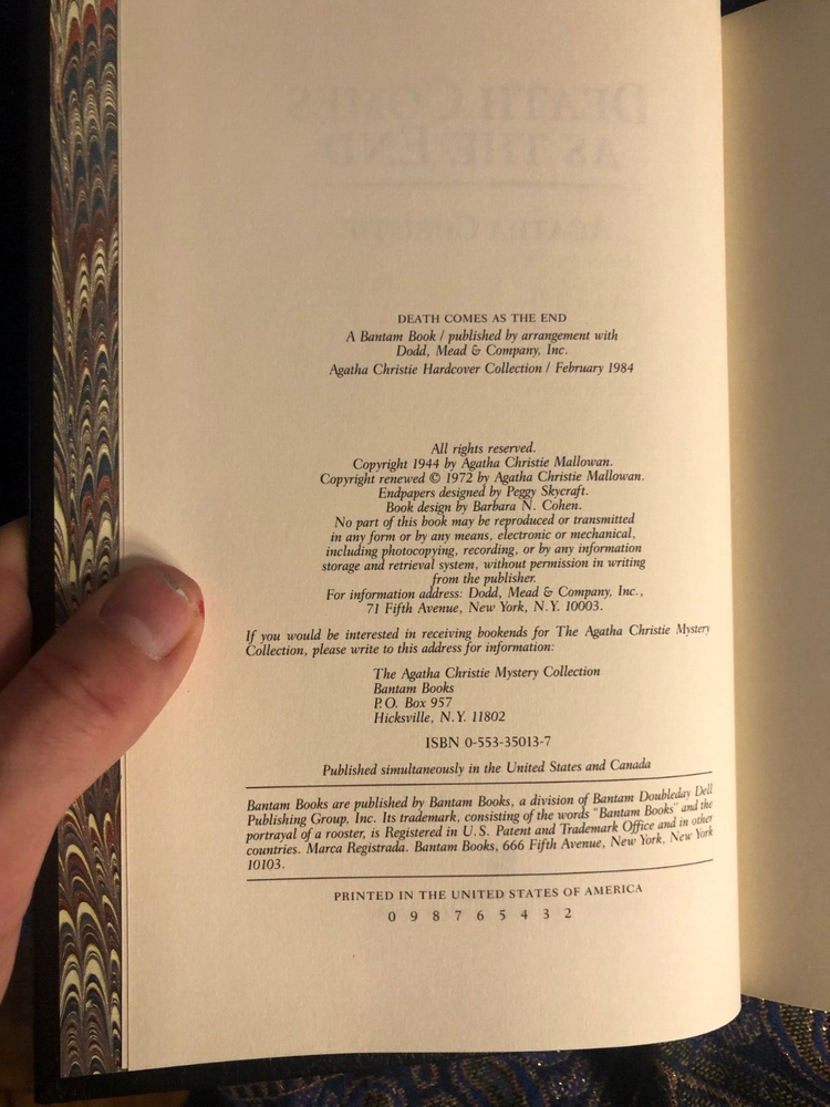 This vintage Agatha Christie mystery is a must-have for any collector! The 1st edition Bantam paperback from 1984 is in great condition, with crisp pages and that classic Christie suspense. A rare find for fans of historical whodunits—Death Comes as the End delivers her signature twists in an ancient Egyptian setting. Thrilling from start to finish!
