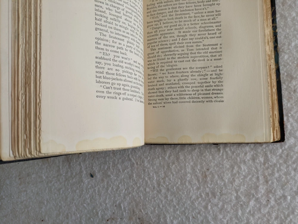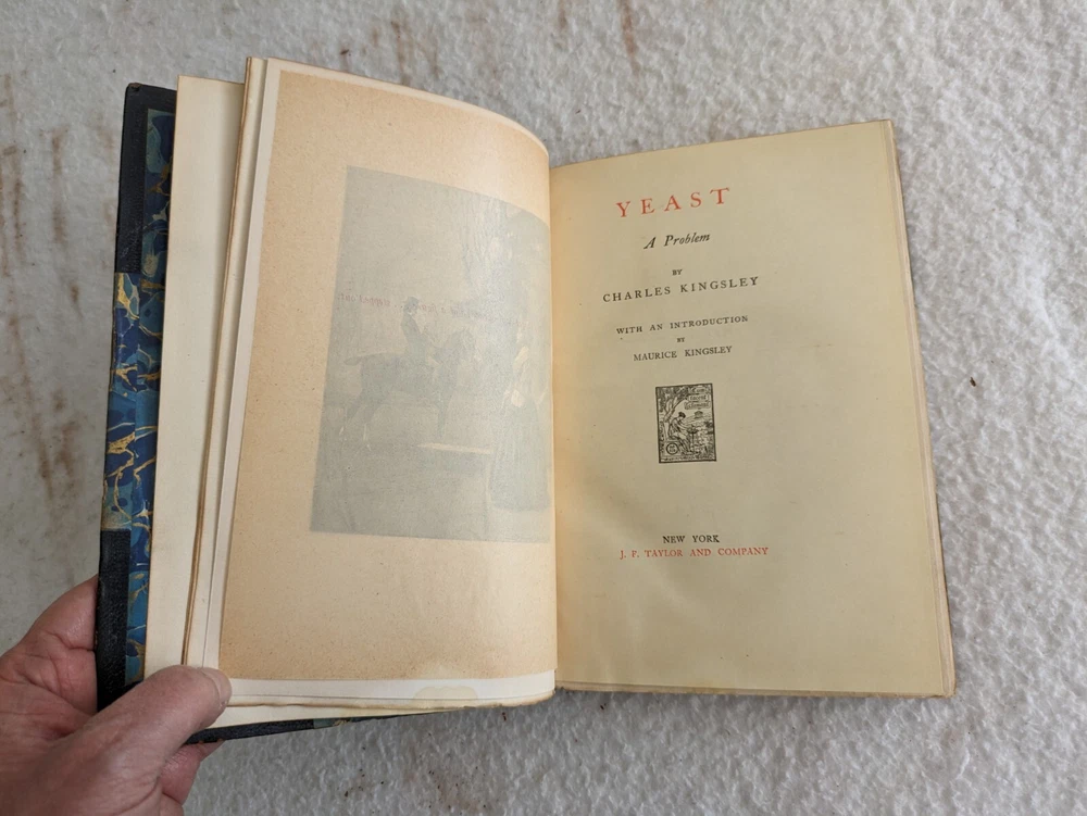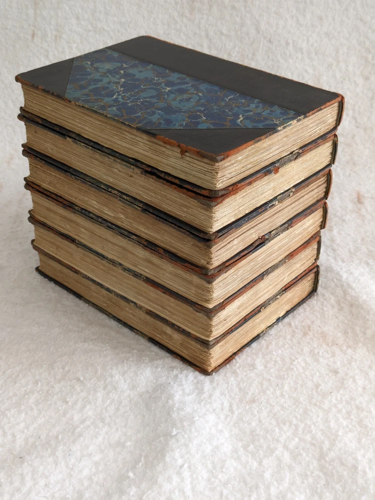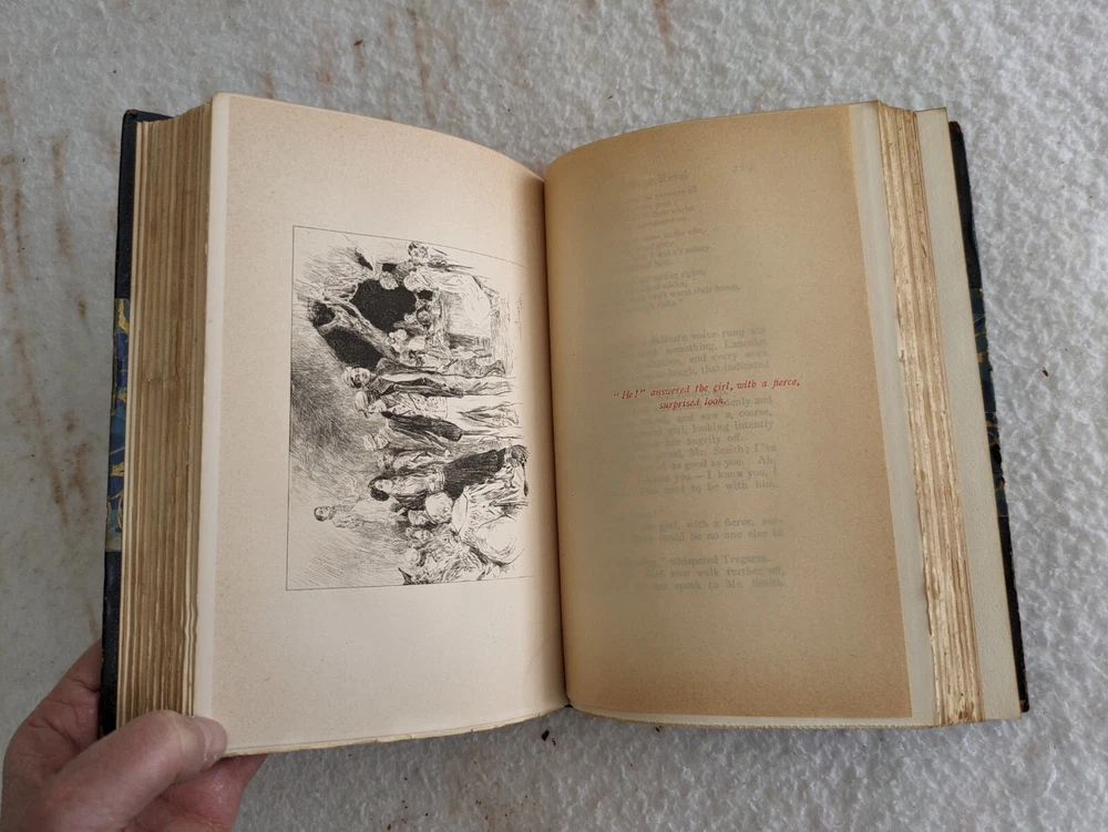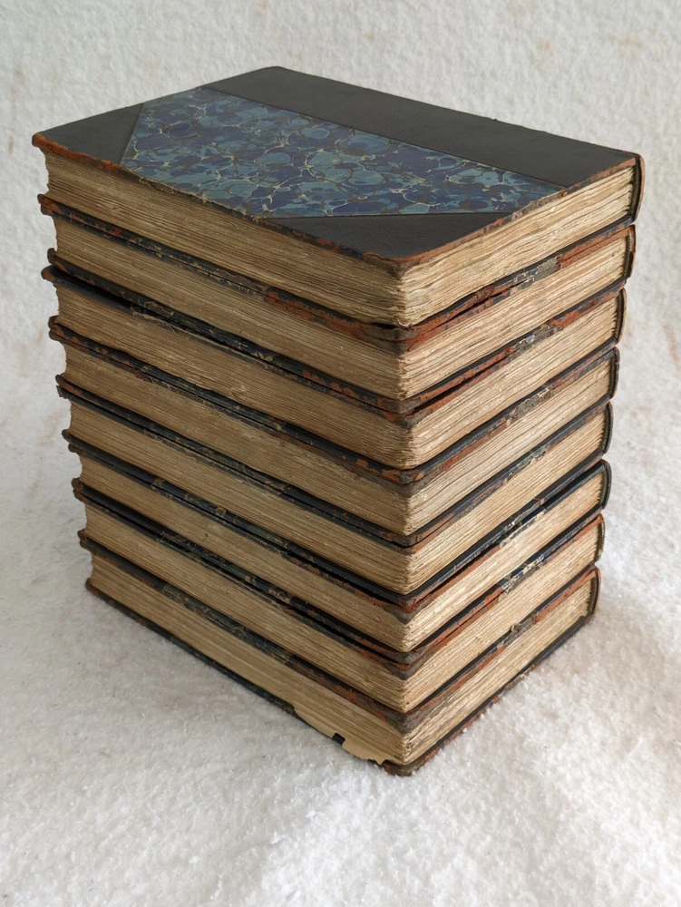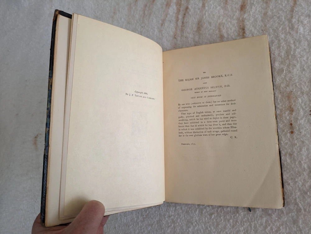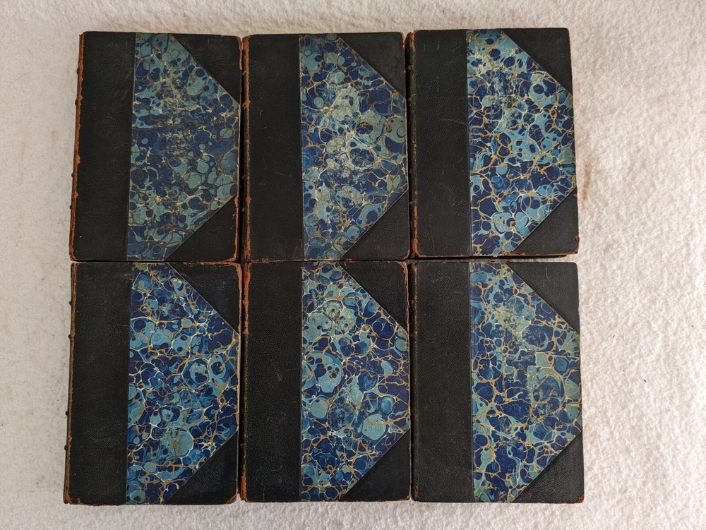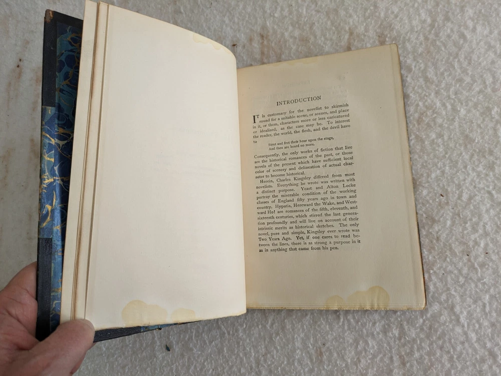 The Devonshire Edition of the WORKS OF CHARLES KINGSLEY in Fourteen Volumes Of which this is number #410/466 New York: J. P. Taylor and Company, 1899 14 Half Leather Hardcovers in Fair to Good Condition. The front endpapers and two adjacent pages are loose in both volumes of WESTWARD HO! Leather is worn and splitting at the spines of both these volumes. The front cover is still attached to POEMS but the leather is splitting and the hinge is very weak and fragile. The rest of the books are edgeworn but bindings are firm. A few volumes have occasional light dampstains. No markings. Please examine photos for details. Condition: We strive to describe and photograph the condition of every item as accurately as possible. Photos are of the actual item that is being sold. Please examine the photos carefully for any condition details and possible flaws. Best Offers: We consider all offers in relation to current market values. We try to respond almost immediately to most offers. Most of our counteroffers are firm but we are open to bargaining. Shipping: We combine shipping. When ordering multiple items from us please request a total before paying. We charge postage based on weight plus $1 for each eBay listing. All of our orders are packed carefully to prevent damage during shipment. We ship most of our items within 24 hours. Contact Us: We are available 7 days a week and are happy to answer any questions you may have.
