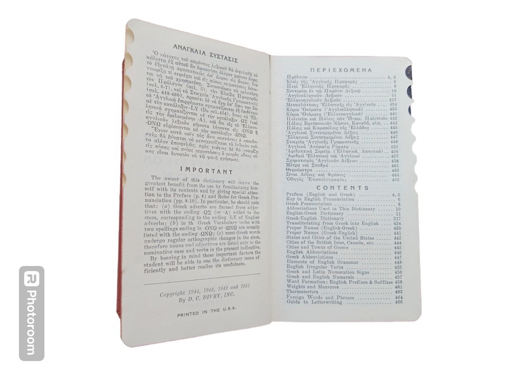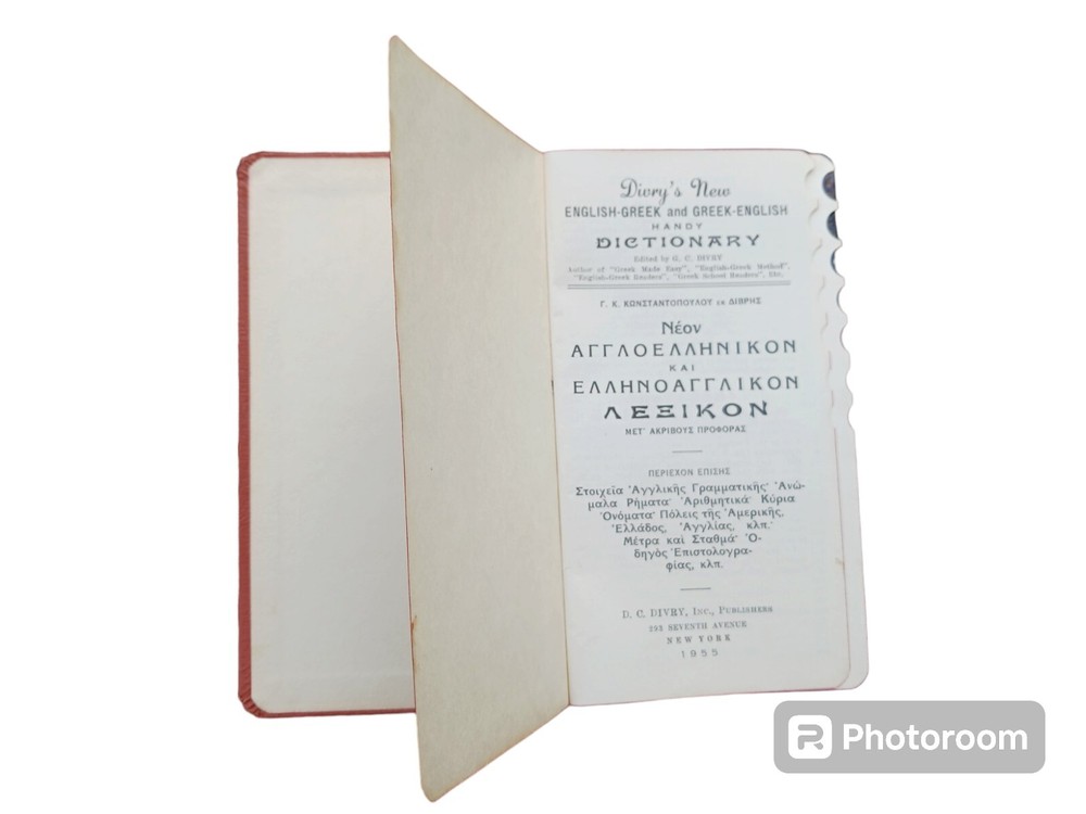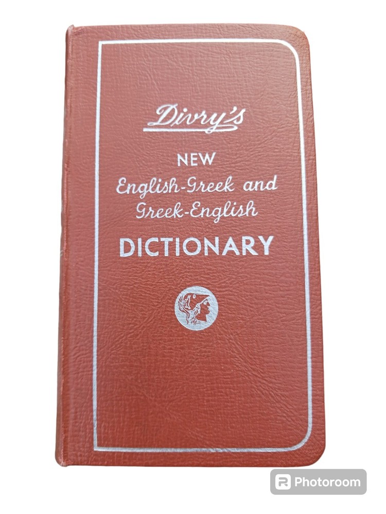 Divry's New English-Greek & Greek-English Dictionary 1955 Leatherette Indexed Please view all pictures they are part of the description. If you have any questions, feel free to ask. Also , a heads up I do not ship on Saturdays after 12, and I package with recycled materials. A little note for a few people. I ship after i have received payment. WITHIN 72 BUSINESS HOURS . BUSINESS HOURS ARE MON-FRI 8:30AM TO 6PM Central Standard Time Sat 8:30am -4pm So SUNDAY and POST OFFICE HOLIDAYS Do Not Count as BUSINESS HOURS. Also, if there are any problems, please contact me ( before eBay) so we can work things out. I am human. I do make errors. Foreign Buyers, Please note: I use the Ebay Global Shipping Program. The program calculates customs and import fees for foreign buyers that your country requires. Import, customs and tax fees are the responsibility of the foreign buyer and will be included in the Ebay Shipping Invoice.
