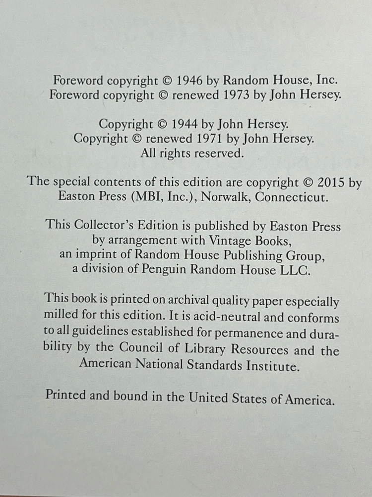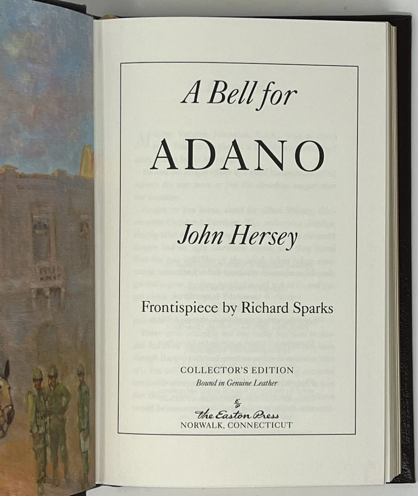 EASTON PRESS: A Bell for Adano: Collector's Edition by John Hersey - 2015 Genuine Leather-Bound Hardcover Published by The Easton Press Please see pictures to determine the exact condition of this book. Please send a message if you have any questions. We ship promptly.