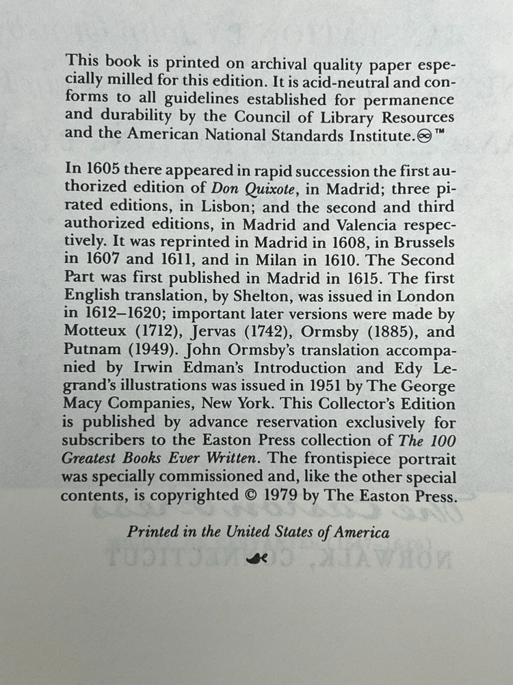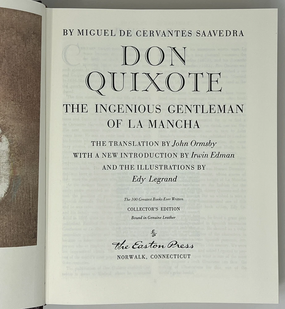 EASTON PRESS: Don Quixote: The Ingenious Gentleman of la Mancha: Collector's Edition by Miguel de Cervantes Saavedra - 1979 Genuine Leather-Bound Hardcover Published by The Easton Press Please see pictures to determine the exact condition of this book. Please send a message if you have any questions. We ship promptly.