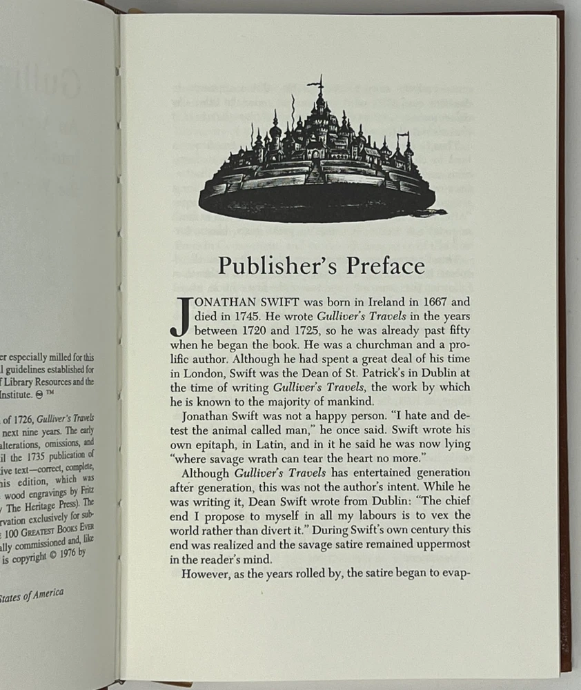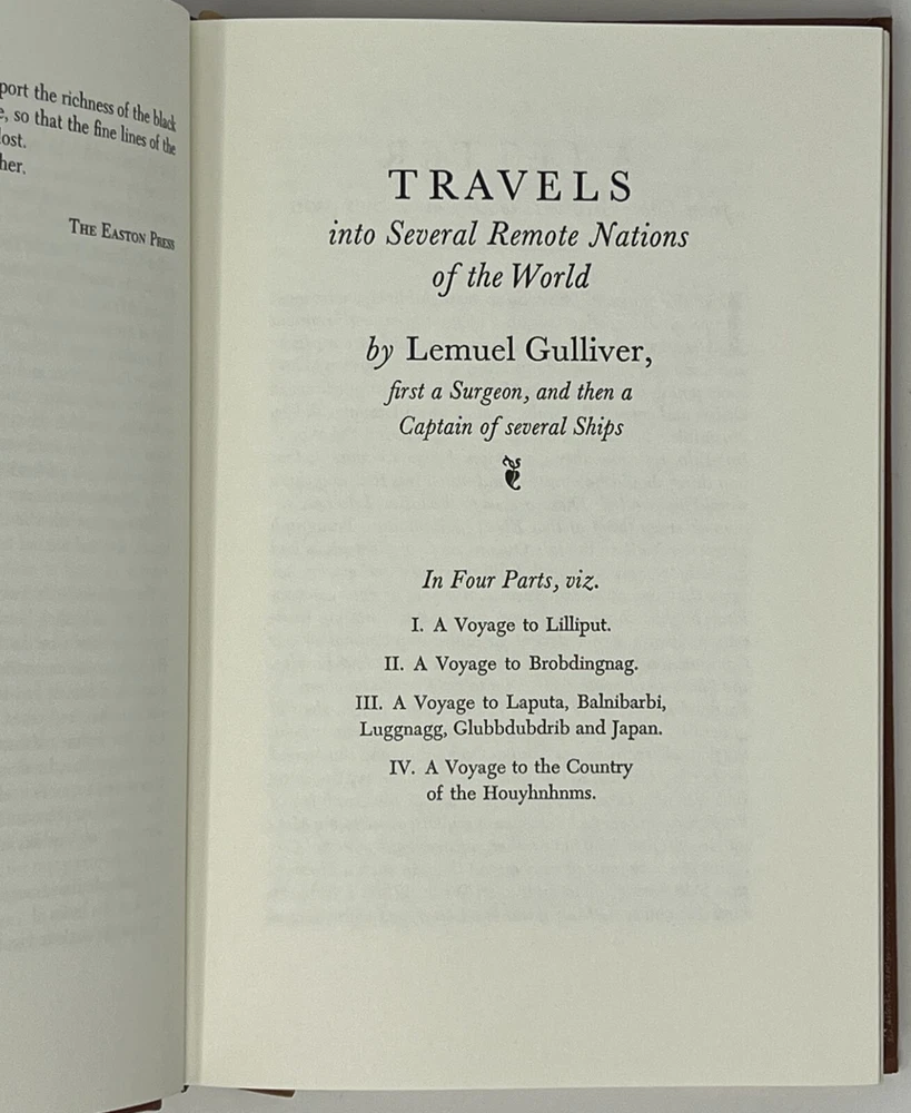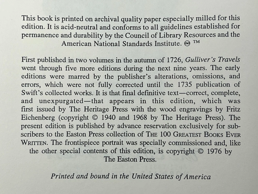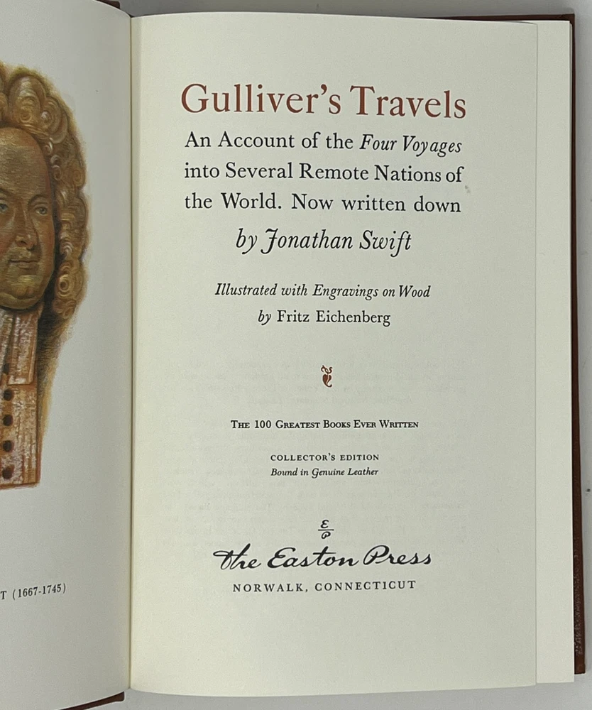 EASTON PRESS: Gulliver's Travels: Collector's Edition by Jonathan Swift - 1976 Genuine Leather-Bound Hardcover Published by The Easton Press Please see pictures to determine the exact condition of this book. Please send a message if you have any questions. We ship promptly.