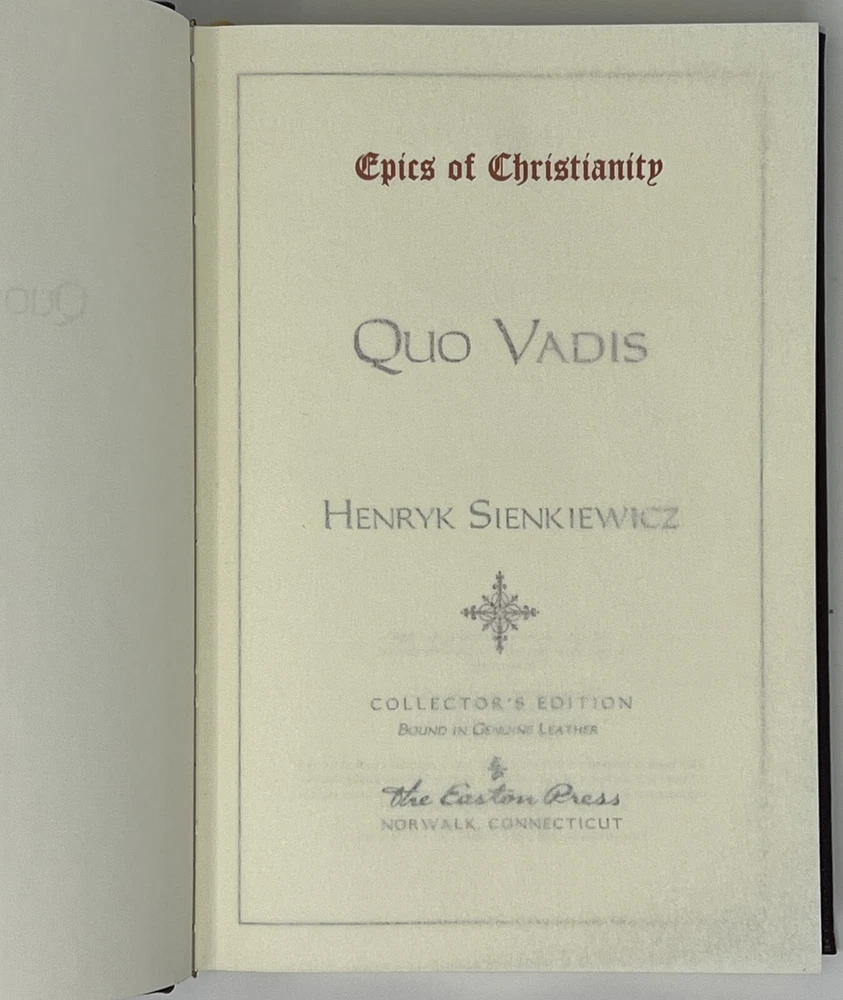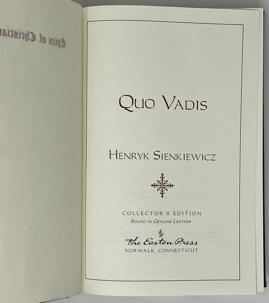 EASTON PRESS: Quo Vadis: Collector's Edition by Henryk Sienkiewicz - 1995 Genuine Leather-Bound Hardcover Published by The Easton Press Please see pictures to determine the exact condition of this book. Please send a message if you have any questions. We ship promptly.