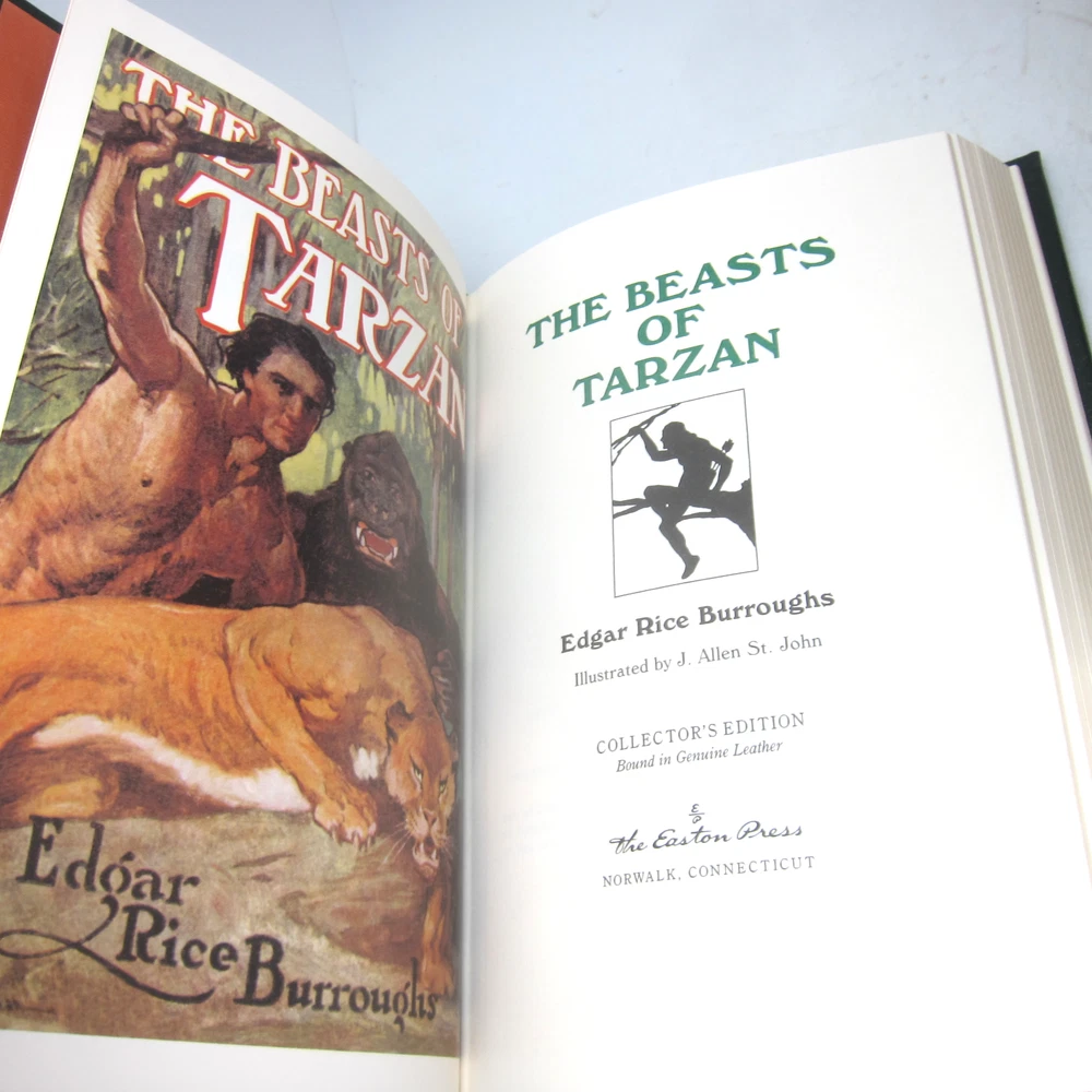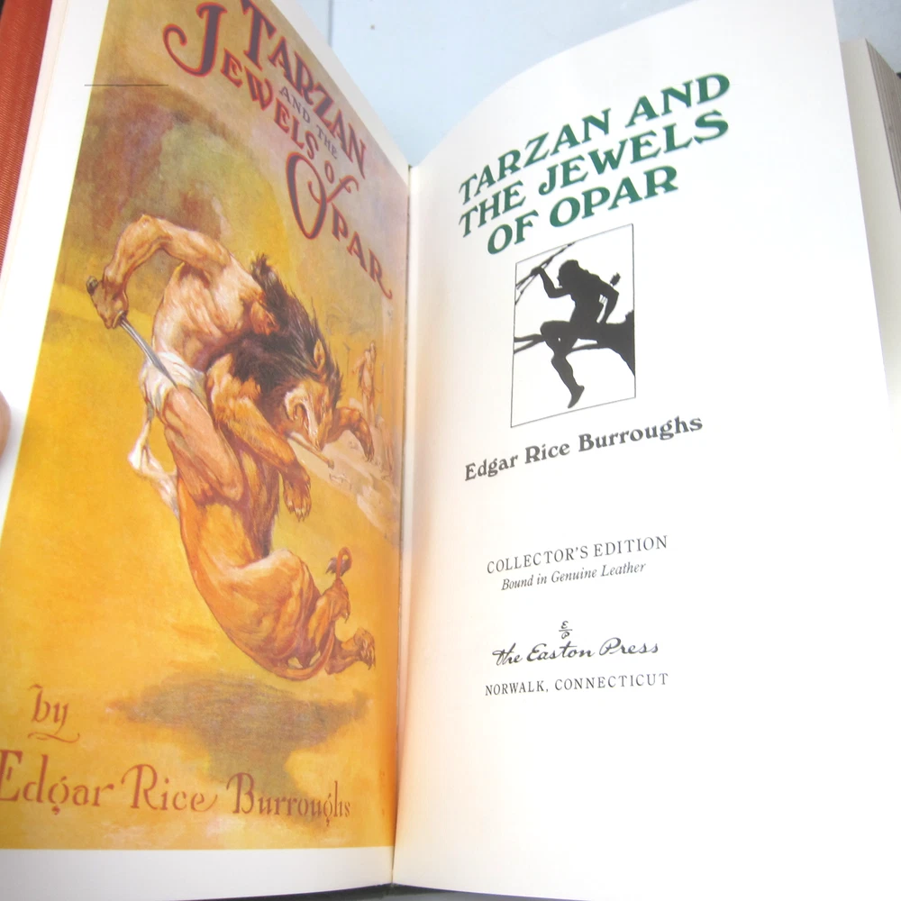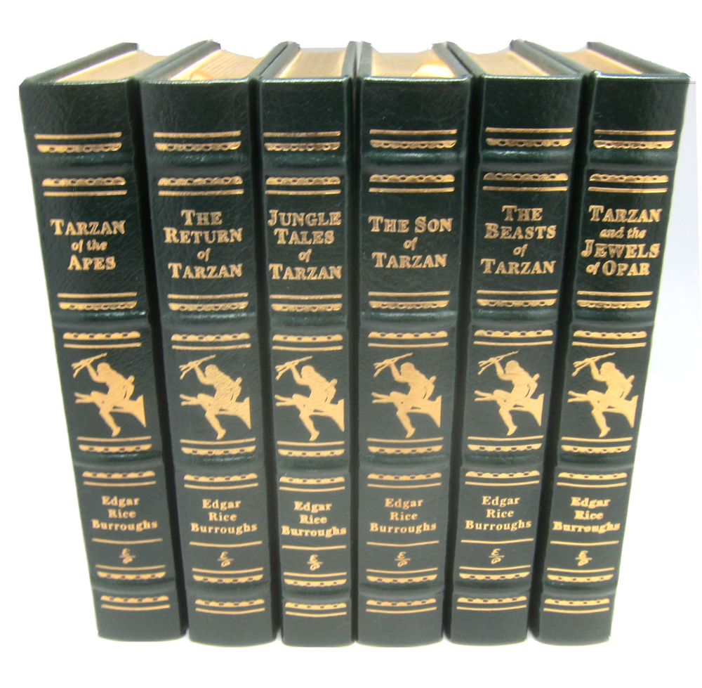 Tarzan of the Apes, 6 volume set by Edgar Rice Burroughs. Beautiful leather-bound, gilt-edged set from Easton Press. Like new condition, never read. Gilt is bright and fully intact. Leather binding is in mint condition. Includes: Tarzan of the Apes Return of Tarzan Jungle Tales of Tarzan The Son of Tarzan The Beasts of Tarzan Tarzan and the Jewels of Opar
