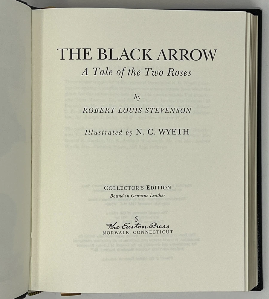 EASTON PRESS: The Black Arrow: A Tale of Two Roses: Collector's Edition by Robert Louis Stevenson - 1991 Genuine Leather-Bound Hardcover Published by The Easton Press Please see pictures to determine the exact condition of this book. Please send a message if you have any questions. We ship promptly.
