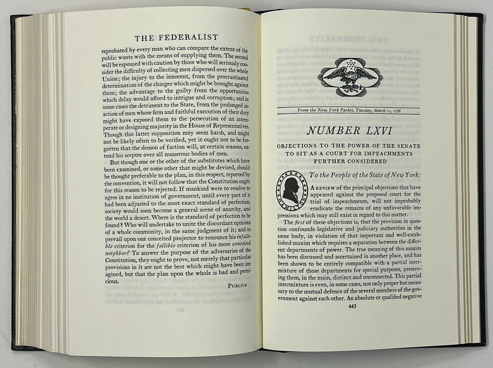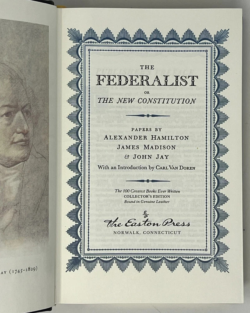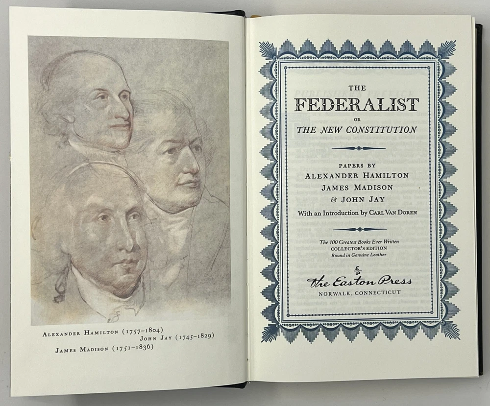 EASTON PRESS: The Federalist or The New Constitution by Alexander Hamilton, James Madison and John Jay - 1979 Genuine Leather-Bound Hardcover Published by The Easton Press Please see pictures to determine the exact condition of this book. Please send a message if you have any questions. We ship promptly.