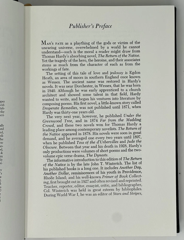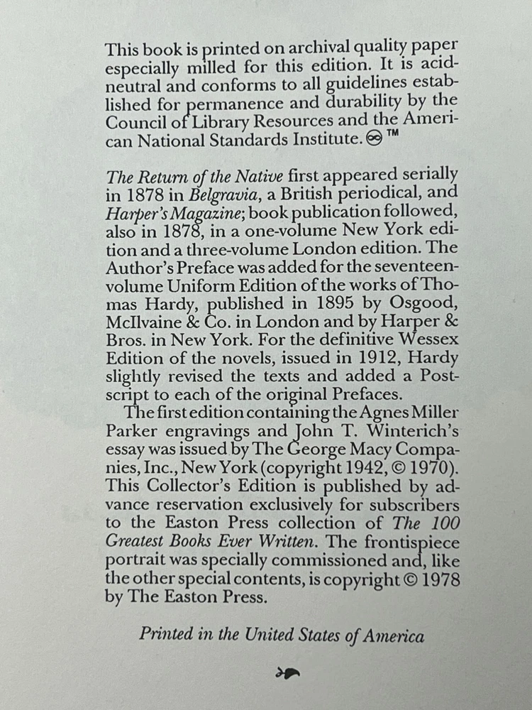 EASTON PRESS: The Return of the Native: Collector's Edition by Thomas Hardy - 1978 Genuine Leather-Bound Hardcover Published by The Easton Press Please see pictures to determine the exact condition of this book. Please send a message if you have any questions. We ship promptly.