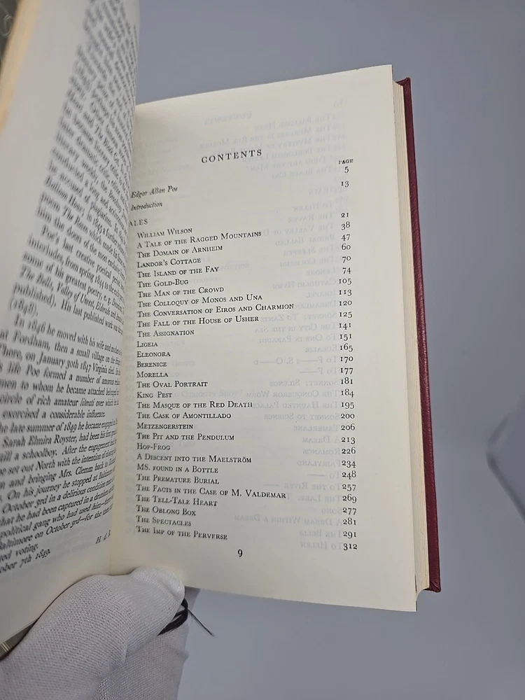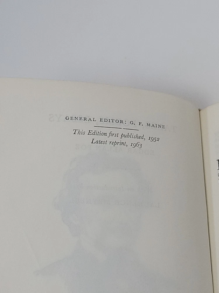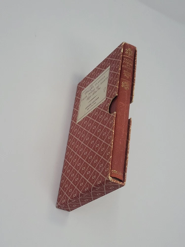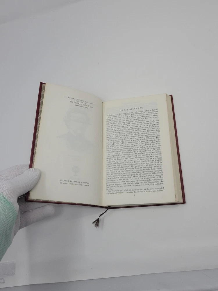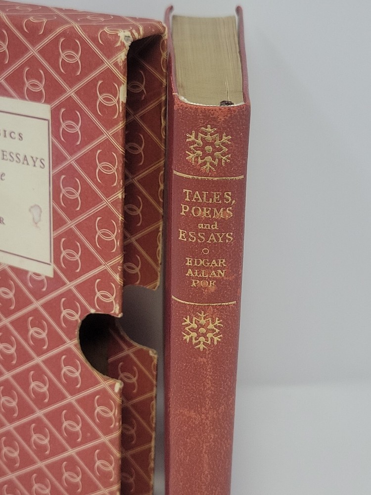 Delve into the world of macabre and classic literature with this vintage leather-bound edition of Edgar Allan Poe's "Tales, Poems and Essays". The second edition of this timeless collection, published in 1963 by Collins London and Glasgow, contains 576 pages of Poe's fiction and poetry for young adults, ages 9-12, and adults. This slipcased book measures 7 1/4 inches in length, 4.5 inches in width, and 1 inch in height. It features a dark and mysterious cover that perfectly captures the essence of Poe's haunting tales. This collectible book weighs 11.2 oz and is the perfect addition to any literature lover's collection. Please view the photos provided for a more detailed description and to determine the condition for yourself. I have documented any signs of wear in the photos. The binding is solid and intact. There's plenty of spring in the pages. No writing inside and no tears or dog ears. There is some cosmetic wear along the spine as well as on the slip case. Overall it's in Excellent Used Condition. What you see in the photos is exactly what you'll receive. WE PACKAGE AND SHIP WITH GREAT CARE! My wife and I do our best to describe each item in detail and provide pictures that feature any defects or issues that we are aware of. We are not experts, just collectors and estate purchaser's, we welcome questions and comments. If you need more photos, just ask, we're happy to send more. Questions are always welcome…we will make every effort to respond quickly. Generally, you'll receive a reply within minutes OFFERS ARE ALWAYS WELCOME! We ship within 1 day after receiving payment, Monday thru Friday. All items are packaged with great care to get to you safe and sound. NOTE: We are very mindful of shipping costs and try to keep them as low as we can. We will use either USPS, UPS, or FedEx…the fastest but least expensive possible. There are times when the Ebay calculations will be inflated, and we do our best to catch that and refund you the difference. WE DO COMBINE SHIPPING. IF YOU'D LIKE TO PURCHASE MORE THAN ONE ITEM, PLEASE MESSAGE US BEFORE YOU PAY SO THAT WE CAN SEND YOU AN INVOICE. If you need expedited shipping, please let us know. It may change shipping costs slightly. If you are not happy with your purchase because of something incorrect in our description, please give us the opportunity to make it right. Your positive feedback is extremely important to us. We will leave prompt feedback for you too before we ship. Thank you for your consideration!