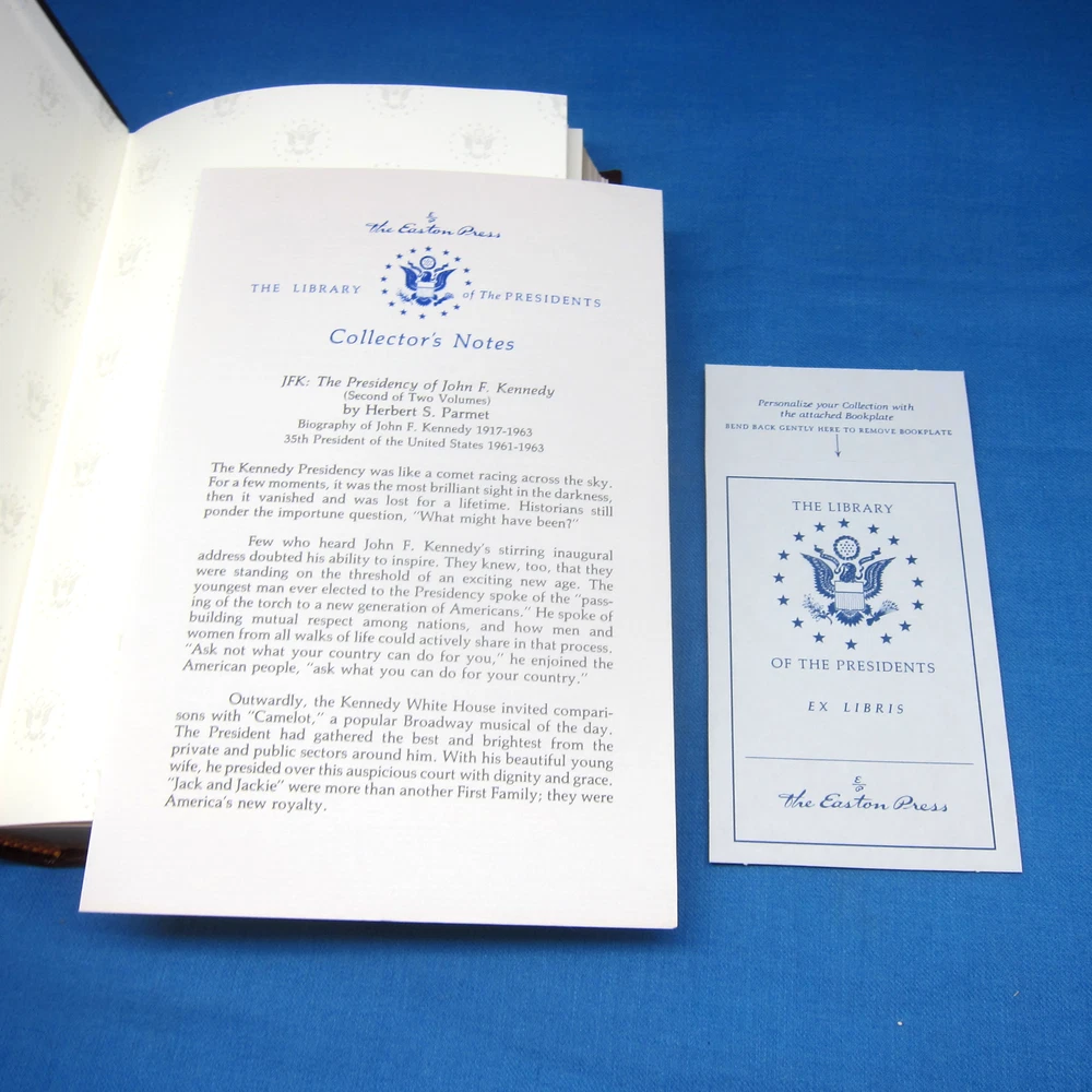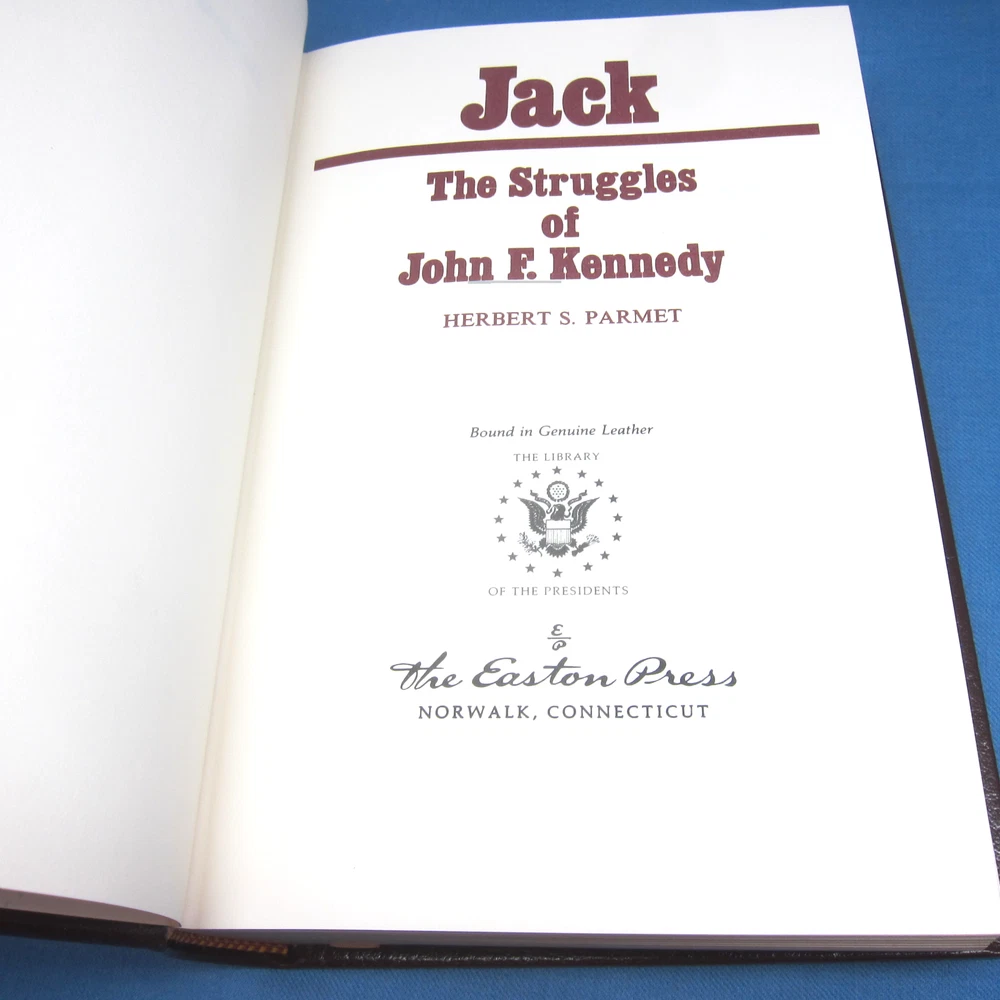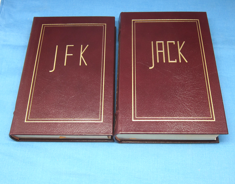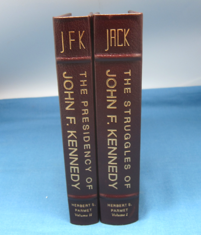 Jack and JFK, 2 volume set by Herbert S. Parmet, leather-bound, gilt edged and decor from Easton Press. Collector's Notes are included in both volumes, and 1 unused bookplate.