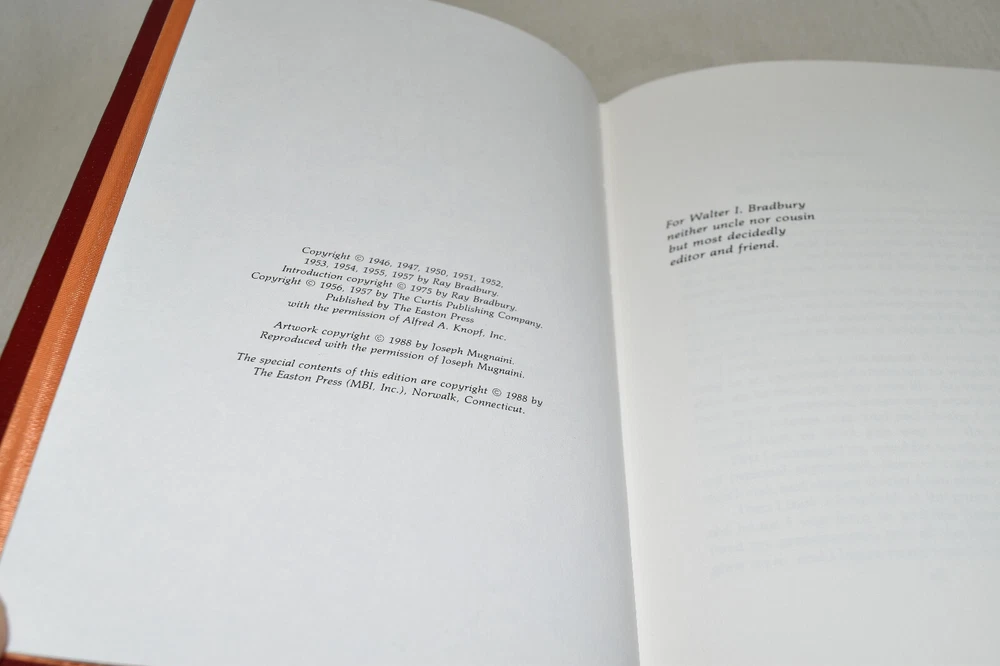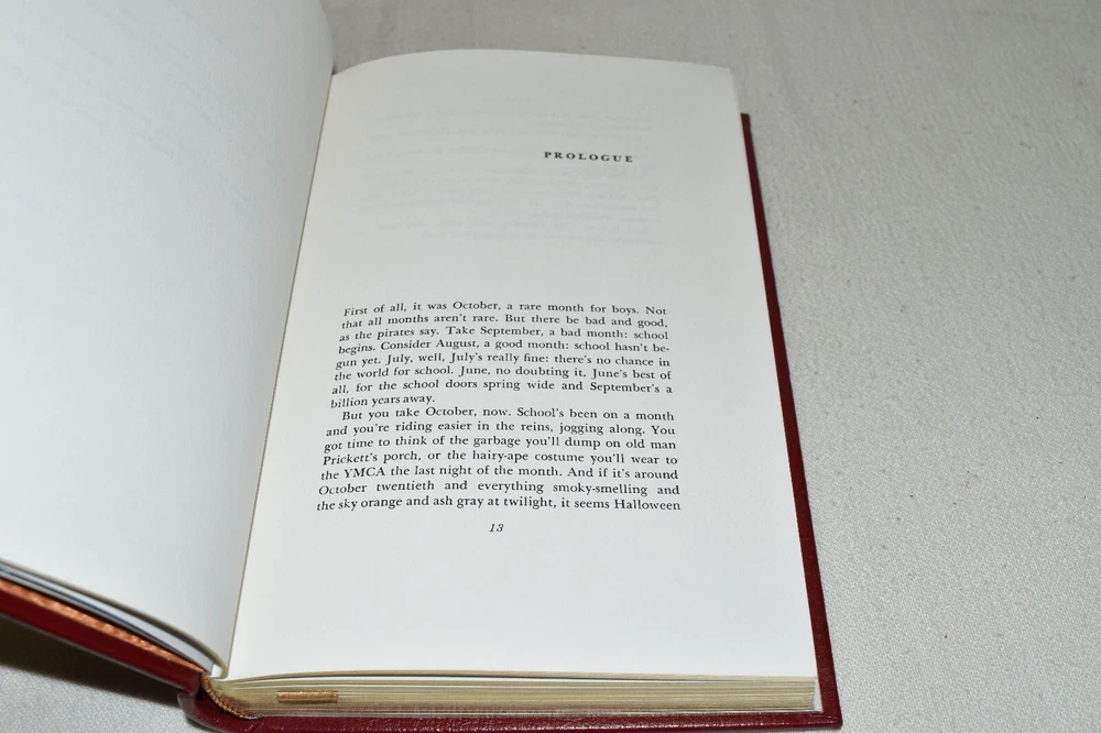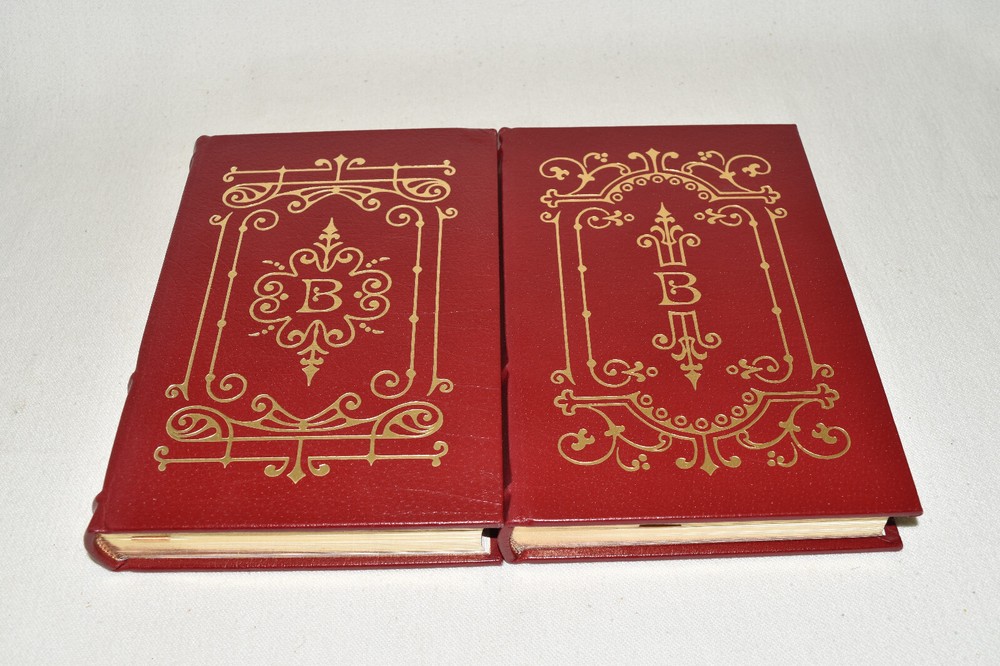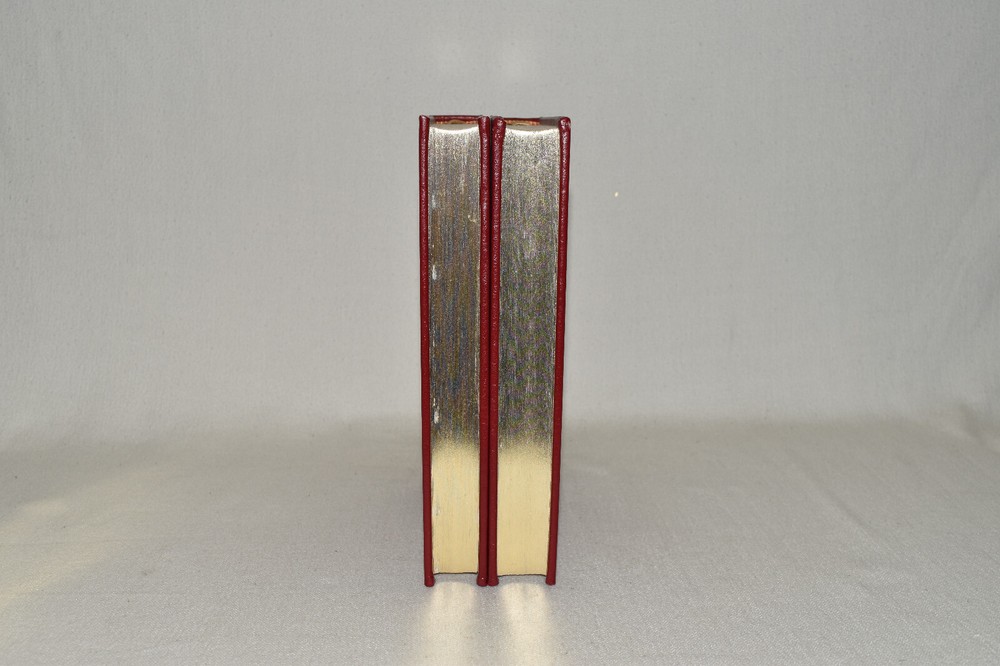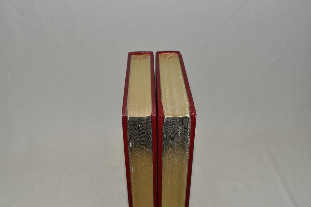 From the Easton Press Collection... Dandelion Wine Something Wicked This Way Comes Two Volume Matching Set by Ray Bradbury Illustrated by Joseph Mugnaini Copyright 1988 by The Easton Press Bound in Premium Full Leather This set contains all of the classic Easton Press trimmings: Premium Leather Silk Moire Endleaves Distinctive Cover Design Hubbed Spine, Accented in Real 22KT Gold Satin Ribbon Page Marker Gilded Page Edges Long-lasting, High Quality Acid-neutral Paper Smyth-sewn Pages for Strength and Durability Beautiful Illustrations This set is in Near Fine condition. The front and back covers are both in near perfect condition and gilded page edges show minor rubbing on Dandelion Wine (see pictures of all sides). There is faint bookplate residue on the second pages. This set is part of the Easton Press Collection and would be a beautiful addition to your Easton Press collection. Hopefully you can add this set to your collection and enjoy it in the years to come... Please Email Me With Any Questions You Might Have! Shipping Info: Buyer to Pay Shipping & Handling International Bidders Pay Extra Shipping Good luck and happy bidding!