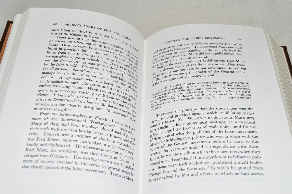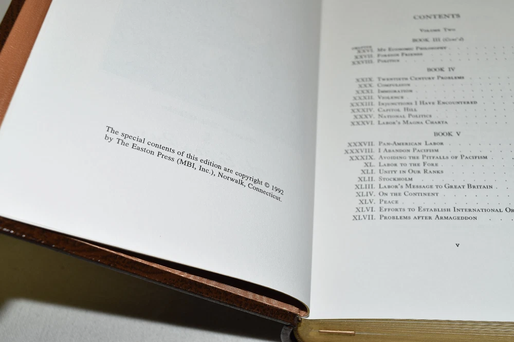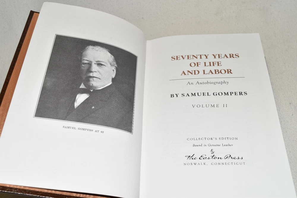 From the Easton Press Collection... Seventy Years of Life and Labor An Autobiography Complete Two Volume Set by Samuel Gompers Collector's Edition Copyright 1992 by The Easton Press Bound in Premium Full Leather This volume contains all of the classic Easton Press trimmings: Premium Leather Silk Moire Endleaves Distinctive Cover Design Hubbed Spine, Accented in Real 22KT Gold Satin Ribbon Page Marker Gilded Page Edges Long-lasting, High Quality Acid-neutral Paper Smyth-sewn Pages for Strength and Durability Beautiful Illustrations A very scarce title in any condition, these Easton Press First Limited Editions are in Fine condition. The front and back covers are both in terrific condition showing and the gilded page edges minor wear (see pictures of all gilt sides). There is faint residue on the second pages. This set was published by Easton Press and would be a beautiful addition to your Easton Press collection. Hopefully you can add this set to your collection and enjoy it in the years to come... Please Email Me With Any Questions You Might Have! Shipping Info: Buyer to Pay Shipping and Handling International Bidders Pay Extra Shipping Seller Not Responsible For Uninsured Items Lost or Damaged in Mail Forms of Payment Accepted: Paypal Good luck and happy bidding! Powered by eBay Turbo Lister The free listing tool. List your items fast and easy and manage your active items.