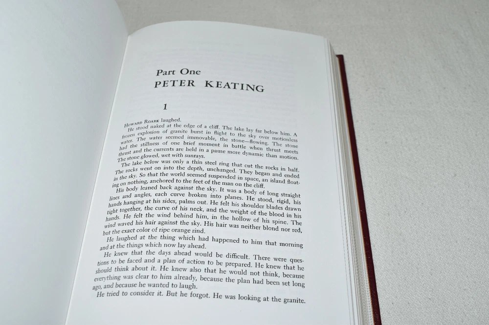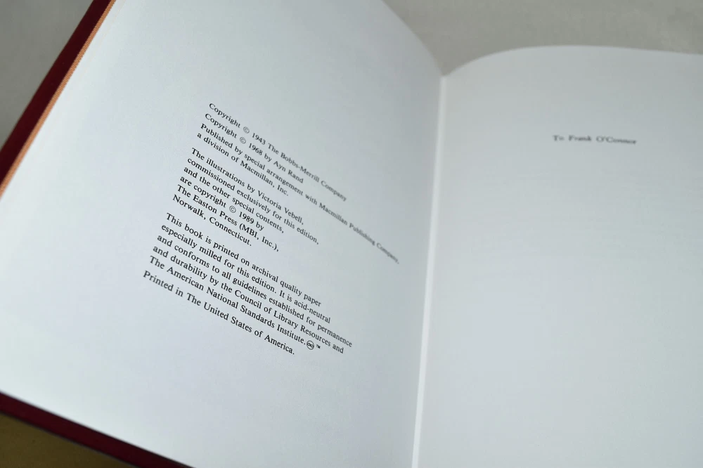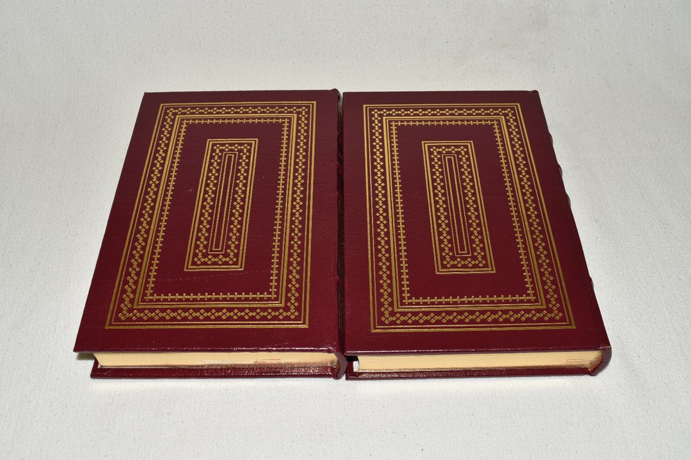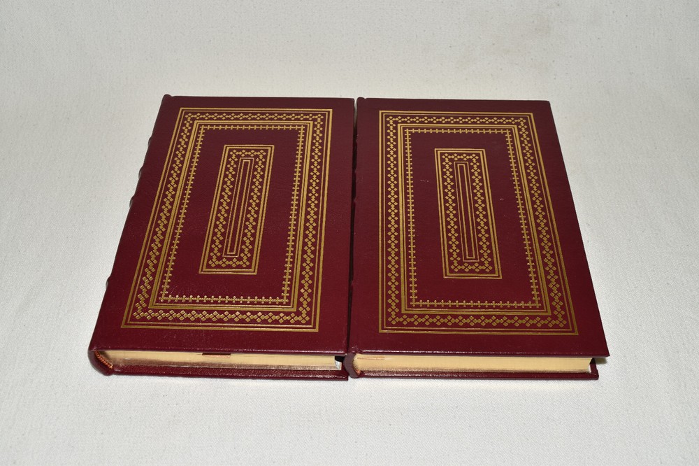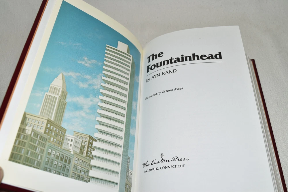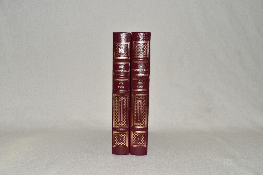 From the Easton Press Collection... The Fountainhead Two Volume Matching Set by Ayn Rand Illustrated by Victoria Vebell Collector's Editions Copyright 1989 by The Easton Press Bound in Premium Full Leather This set contains all of the classic Easton Press trimmings: Premium Leather Silk Moire Endleaves Distinctive Cover Design Hubbed Spine, Accented in Real 22KT Gold Satin Ribbon Page Marker Gilded Page Edges Long-lasting, High Quality Acid-neutral Paper Smyth-sewn Pages for Strength and Durability Beautiful Illustrations This set is in Near Fine - Fine condition. The front and back covers are both in terrific condition showing light wear and the gilded page edges show some minor rubbing on the side edge of volume two (see pictures of all sides). There is light residue on the second page of each book. This set is part of the Easton Press Collection and would be a beautiful addition to your Easton Press collection. Hopefully you can add this set to your collection and enjoy it in the years to come... Please Email Me With Any Questions You Might Have! Shipping Info: Buyer to Pay Shipping & Handling International Bidders Pay Extra Shipping Good luck and happy bidding!