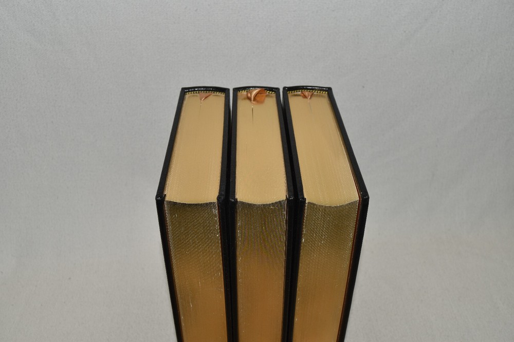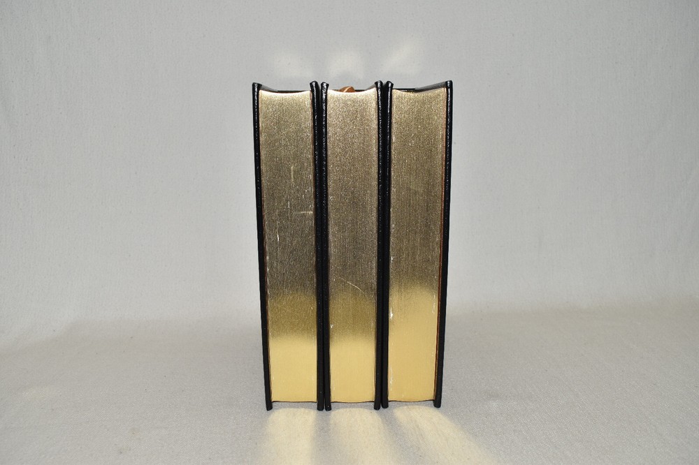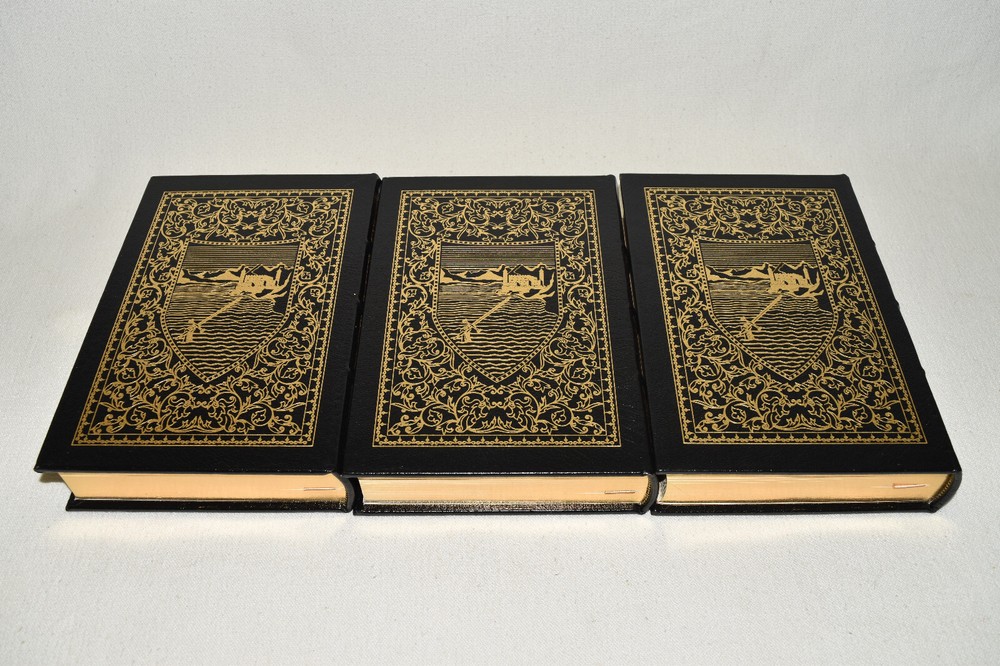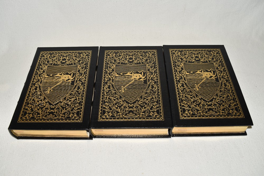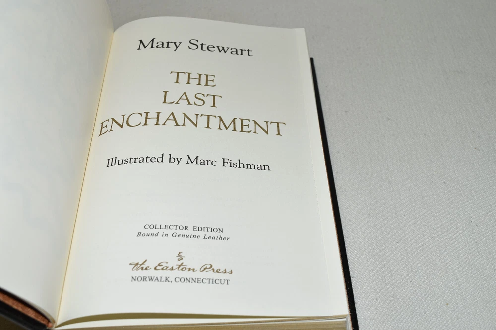 From the Easton Press Collection... Merlin Set The Crystal Cave The Hollow Hills The Last Enchantment Three Volume Matching Set by Mary Stewart Illustrated by Marc Fishman Copyright 2003 by The Easton Press Bound in Premium Full Leather This set contains all of the classic Easton Press trimmings: Premium Leather Silk Moire Endleaves Distinctive Cover Design Hubbed Spine, Accented in Real 22KT Gold Satin Ribbon Page Marker Gilded Page Edges Long-lasting, High Quality Acid-neutral Paper Smyth-sewn Pages for Strength and Durability Beautiful Illustrations This set is in Near Fine - Fine condition. The front and back covers are both in near perfect condition and gilded page edges show minor wear to The Last Enchantment edges (see pictures of all sides). There are blank bookplates affixed to the second pages. This set is part of the Easton Press Collection and would be a beautiful addition to your Easton Press collection. Hopefully you can add this set to your collection and enjoy it in the years to come... Please Email Me With Any Questions You Might Have! Shipping Info: Buyer to Pay Shipping & Handling International Bidders Pay Extra Shipping Good luck and happy bidding!
