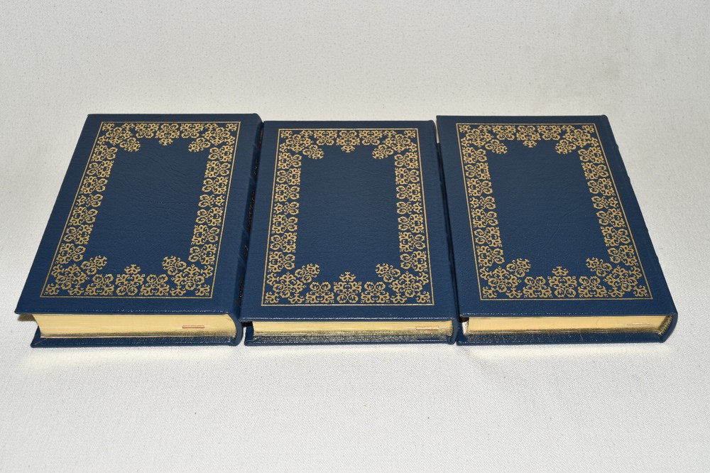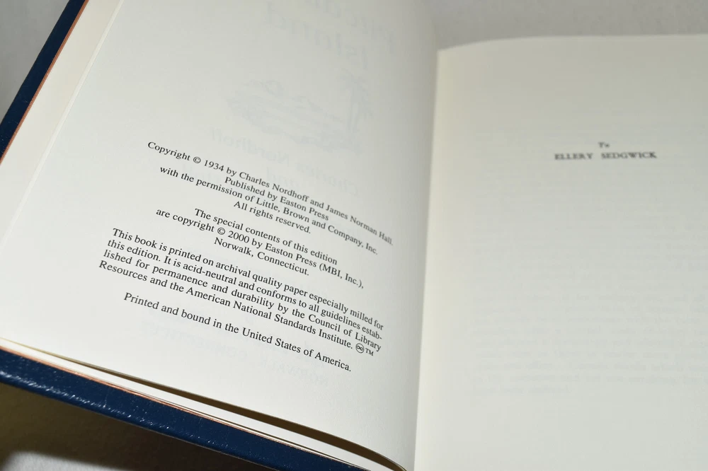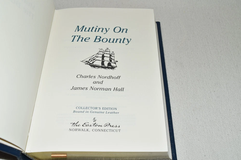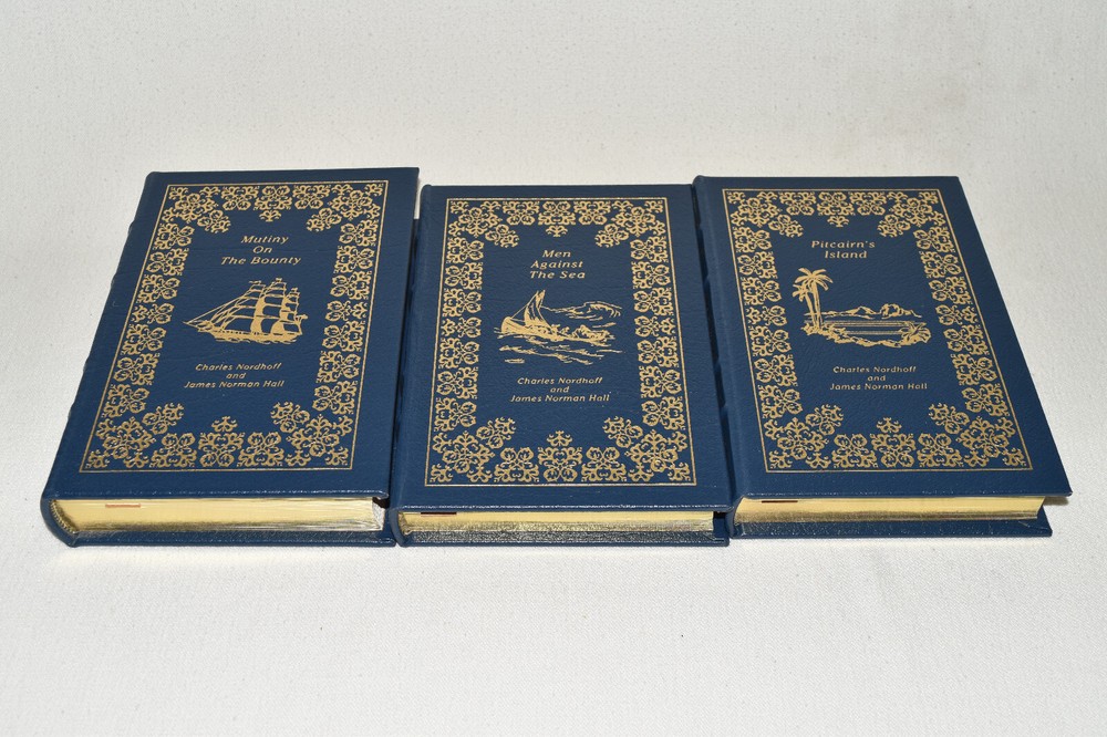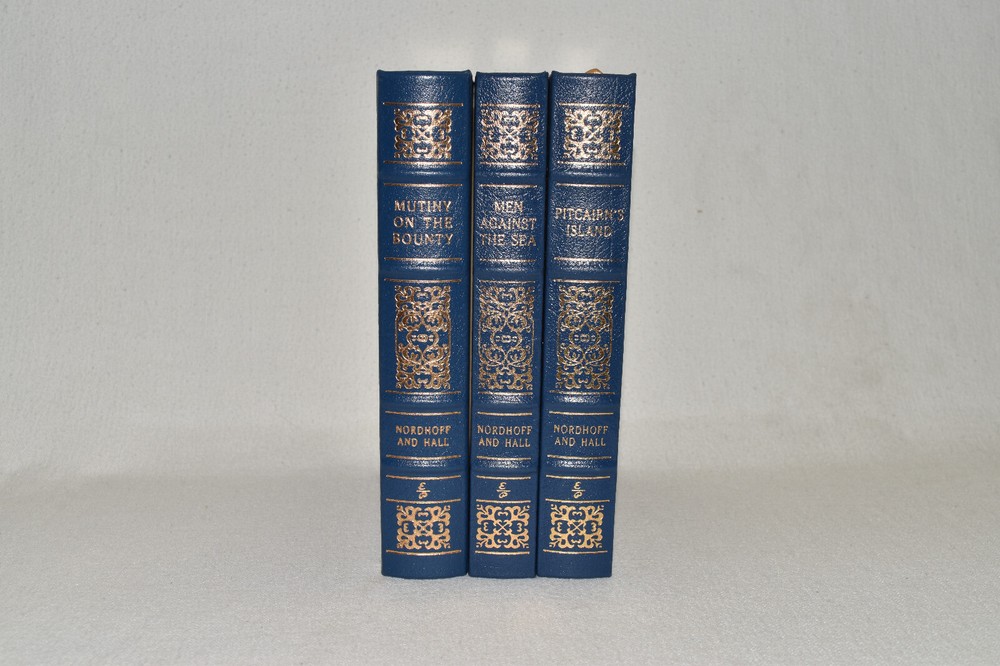 From the Easton Press Collection... Mutiny on the Bounty Pitcairn's Island Men Against the Sea Complete Three-Volume Set by Charles Nordhoff & James Norman Hall Beautifully Illustrated Copyright 2000 by The Easton Press Bound in Premium Full Leather This volume contains all of the classic Easton Press trimmings: Premium Leather Decorated Endleaves Distinctive Cover Design Hubbed Spine, Accented in Real 22KT Gold Satin Ribbon Page Marker Gilded Page Edges Long-lasting, High Quality Acid-neutral Paper Smyth-sewn Pages for Strength and Durability Beautiful Illustrations A very scarce set in any condition, these volumes are in Fine condition. The front and back covers are both in terrific condition and the gilded page edges show faint wear (see pictures of all edges). There are blank bookplates affixed to the second page of each book. This set was published by Easton Press and would be a beautiful addition to your Easton Press collection. Hopefully you can add this set to your collection and enjoy it in the years to come... Please Email Me With Any Questions You Might Have! Shipping Info: Buyer to Pay Shipping and Handling International Bidders Pay Extra Shipping Seller Not Responsible For Uninsured Items Lost or Damaged in Mail Forms of Payment Accepted: Paypal Good luck and happy bidding! Powered by eBay Turbo Lister The free listing tool. List your items fast and easy and manage your active items.