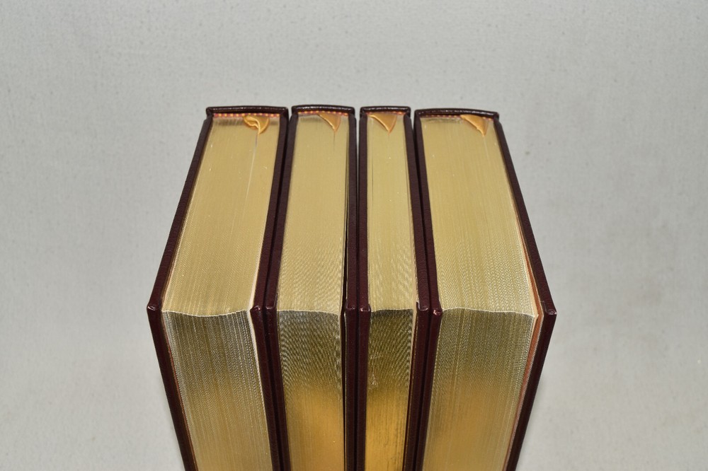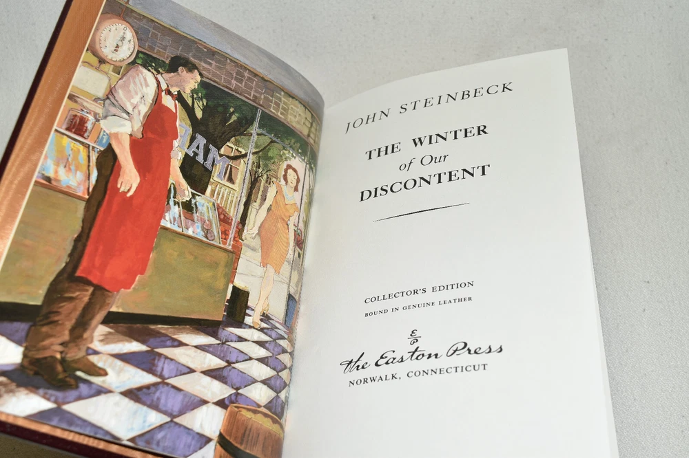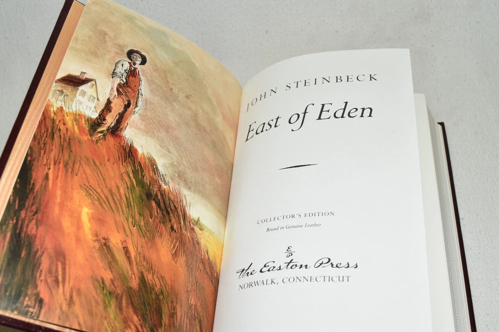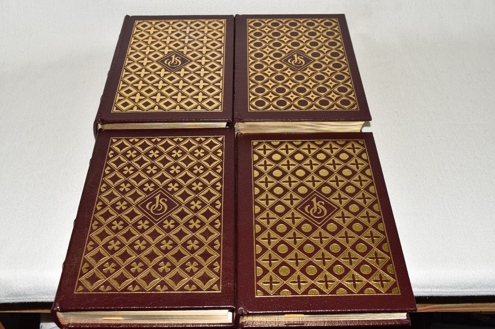 From the Easton Press Collection... The Grapes of Wrath The Winter of Our Discontent Cannery Row East of Eden Complete Four-Volume Set by John Steinbeck Beautifully Illustrated Copyright 1988 by The Easton Press Bound in Premium Full Leather This volume contains all of the classic Easton Press trimmings: Premium Leather Decorated Endleaves Distinctive Cover Design Hubbed Spine, Accented in Real 22KT Gold Satin Ribbon Page Marker Gilded Page Edges Long-lasting, High Quality Acid-neutral Paper Smyth-sewn Pages for Strength and Durability Beautiful Illustrations A very scarce set in any condition, these volumes are in Fine condition. The front and back covers are both in terrific condition and the gilded page edges show only minor wear (see pictures of all edges). There are no bookplates, markings, or other signs of prior ownership in these books. This set was published by Easton Press and would be a beautiful addition to your Easton Press collection. Hopefully you can add this set to your collection and enjoy it in the years to come... Please Email Me With Any Questions You Might Have! Shipping Info: Buyer to Pay Shipping and Handling International Bidders Pay Extra Shipping Seller Not Responsible For Uninsured Items Lost or Damaged in Mail Forms of Payment Accepted: Paypal Good luck and happy bidding! Powered by eBay Turbo Lister The free listing tool. List your items fast and easy and manage your active items.